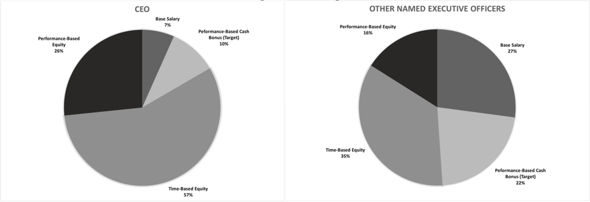 The Compensation Committee allocated long-term equity awards between time-based and performance-based restricted stock units. To balance the advantages of both time-based and performance-based awards, the Compensation Committee decided that annual long-term equity incentive awards granted to our named executive officers (other than Mr. Werner and Ms. MacPherson) in fiscal 2021 would be made half in the form of performance-based restricted stock units (which could be earned in amounts between 50% and 150% of the target amount) and half in the form of time-based restricted stock units, all of which would vest over four years.