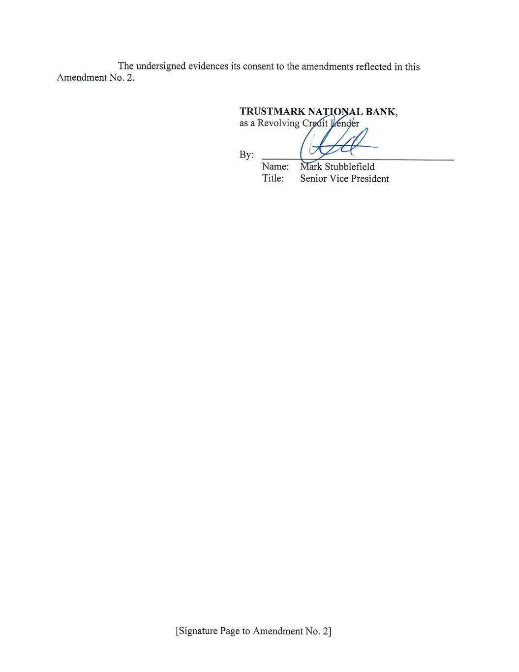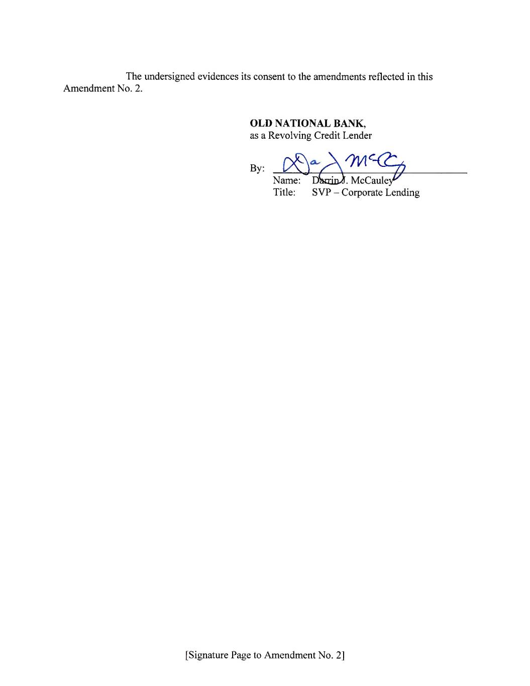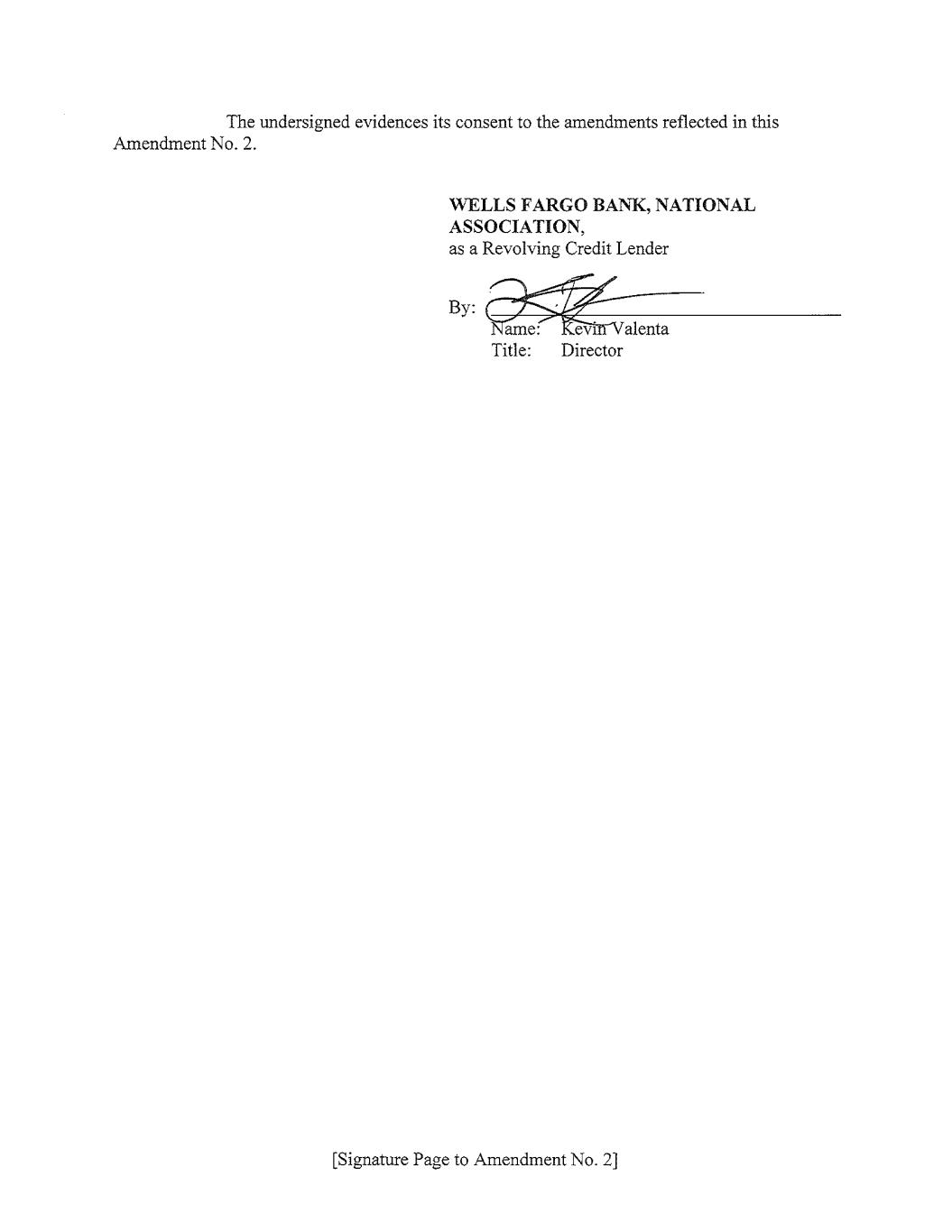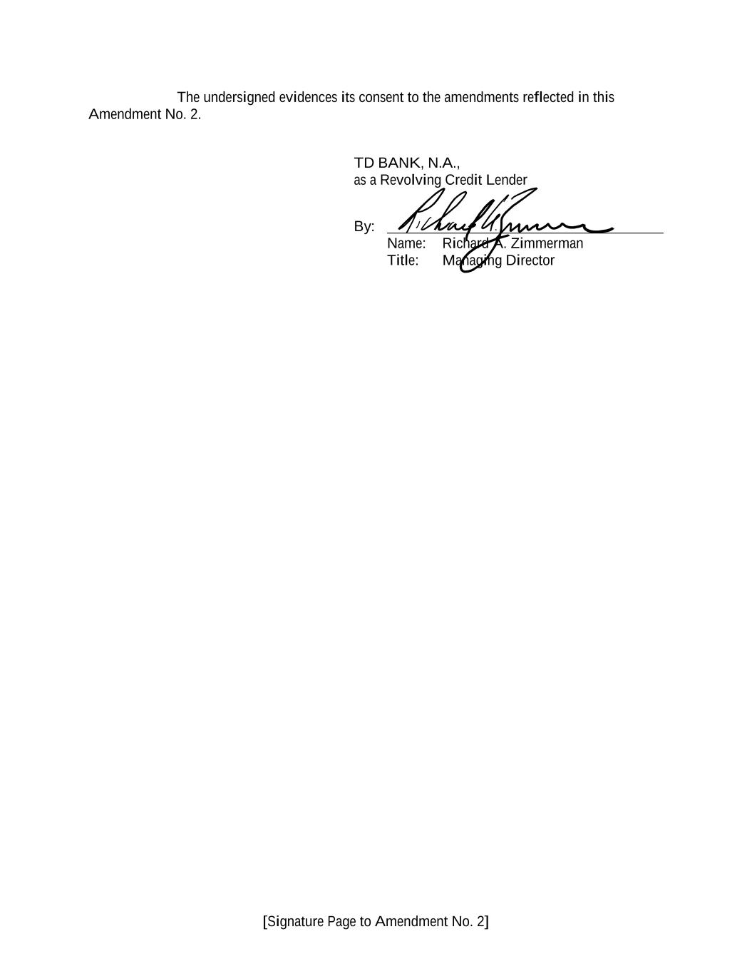[Signature Page to Amendment No. 2] The undersigned evidences its consent to the amendments reflected in this Amendment No. 2. TD BANK, N.A., as a Revolving Credit Lender By: Name: Richard A. Zimmerman Title: Managing Director