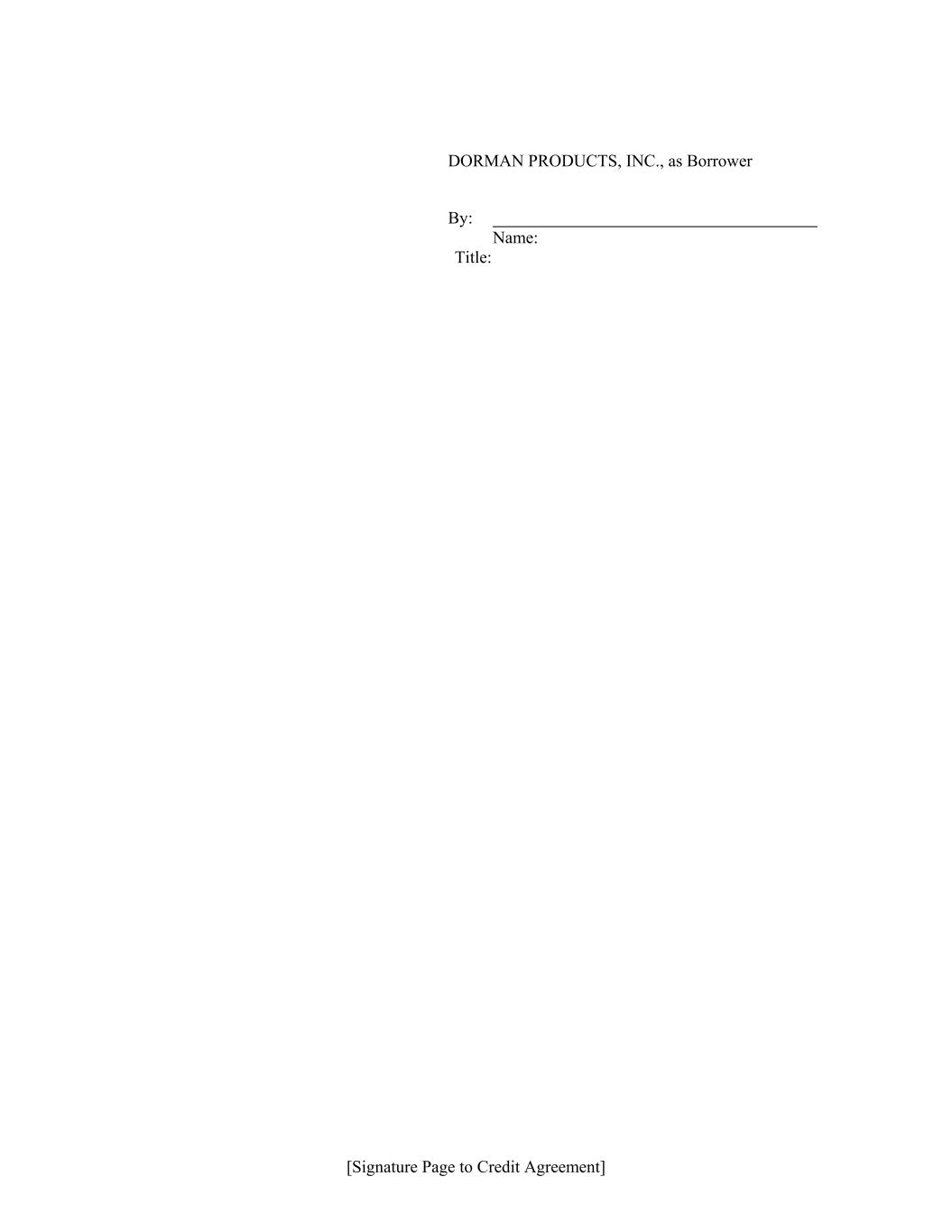 DORMAN PRODUCTS, INC., as BorrowerBy: Name:Title:[Signature Page to Credit Agreement]