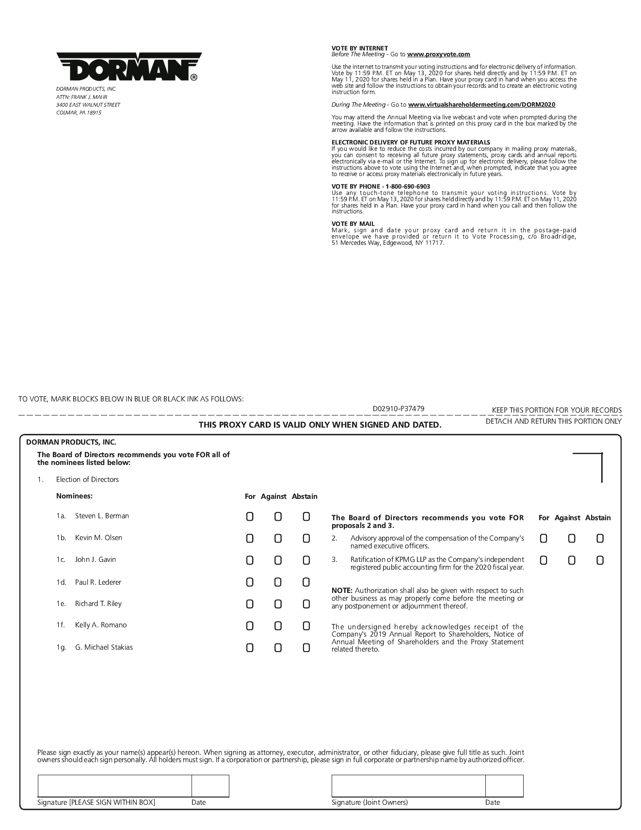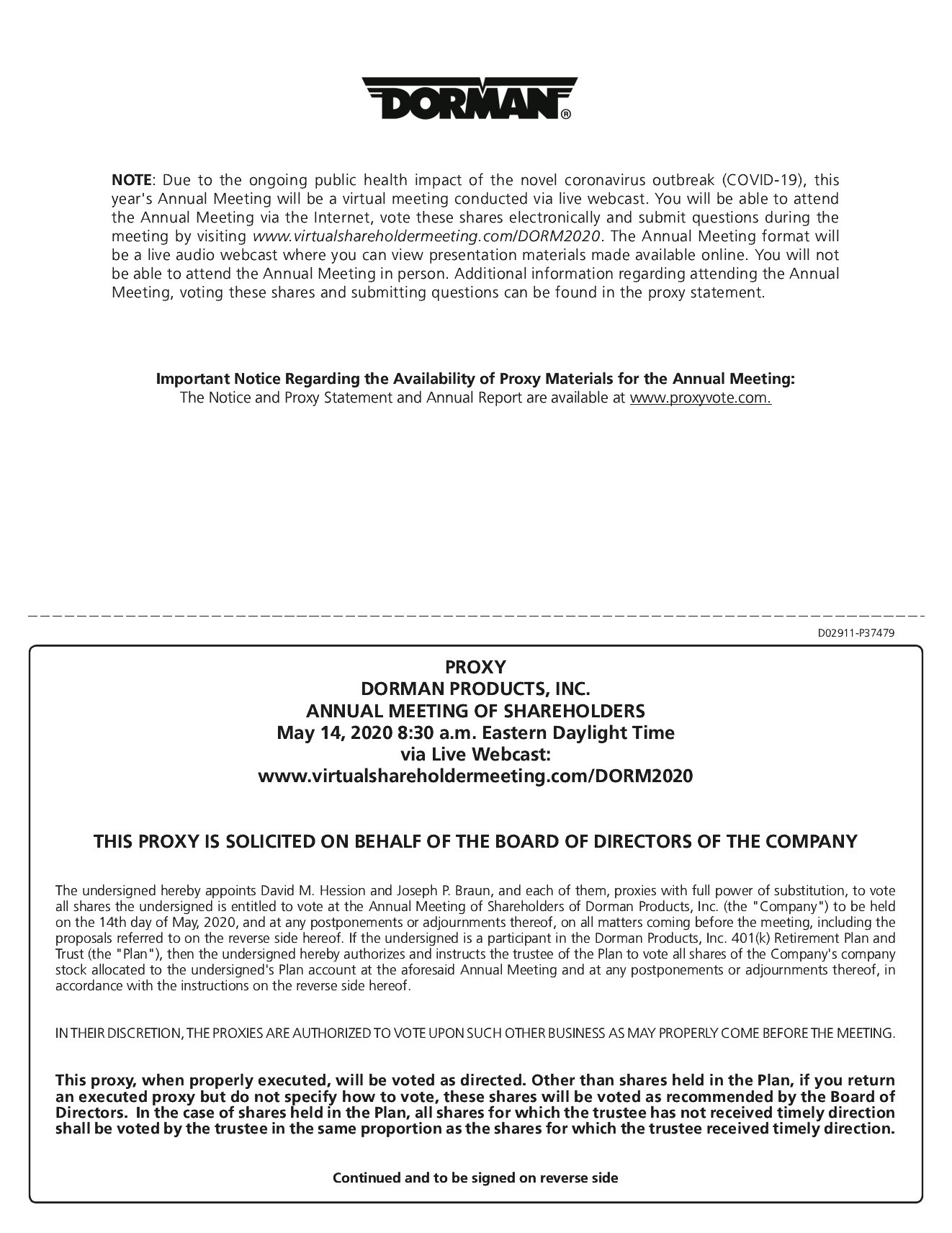 The Compensation Committee also approves participation in, and all incentive awards, grants and related actions under, our equity plans for our Chief Executive Officer, Executive Chairman and our other named executive officers. In addition, the Compensation Committee approves Company contributions, if any, to the 401(k) Retirement Plan, administers the Dorman Products, Inc. Non-Qualified Deferred Compensation Plan, referred to as the “Non-Qualified Deferred Compensation Plan,” administers our cash incentive plans, and certifies payments related to performance-based compensation awarded to our named executive officers.