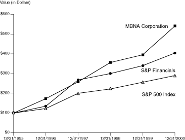 The undersigned hereby appoints James H. Berick, Charles M. Cawley and Benjamin R. Civiletti, and each or any of them, as proxies, with full powers of substitution, to represent and to vote all shares of the common stock of MBNA Corporation which the undersigned is entitled to vote at the Annual Meeting of Stockholders of the Corporation to be held on April 30, 2001 and at any adjournment thereof. The undersigned acknowledges receipt of notice of the meeting and the proxy statement.