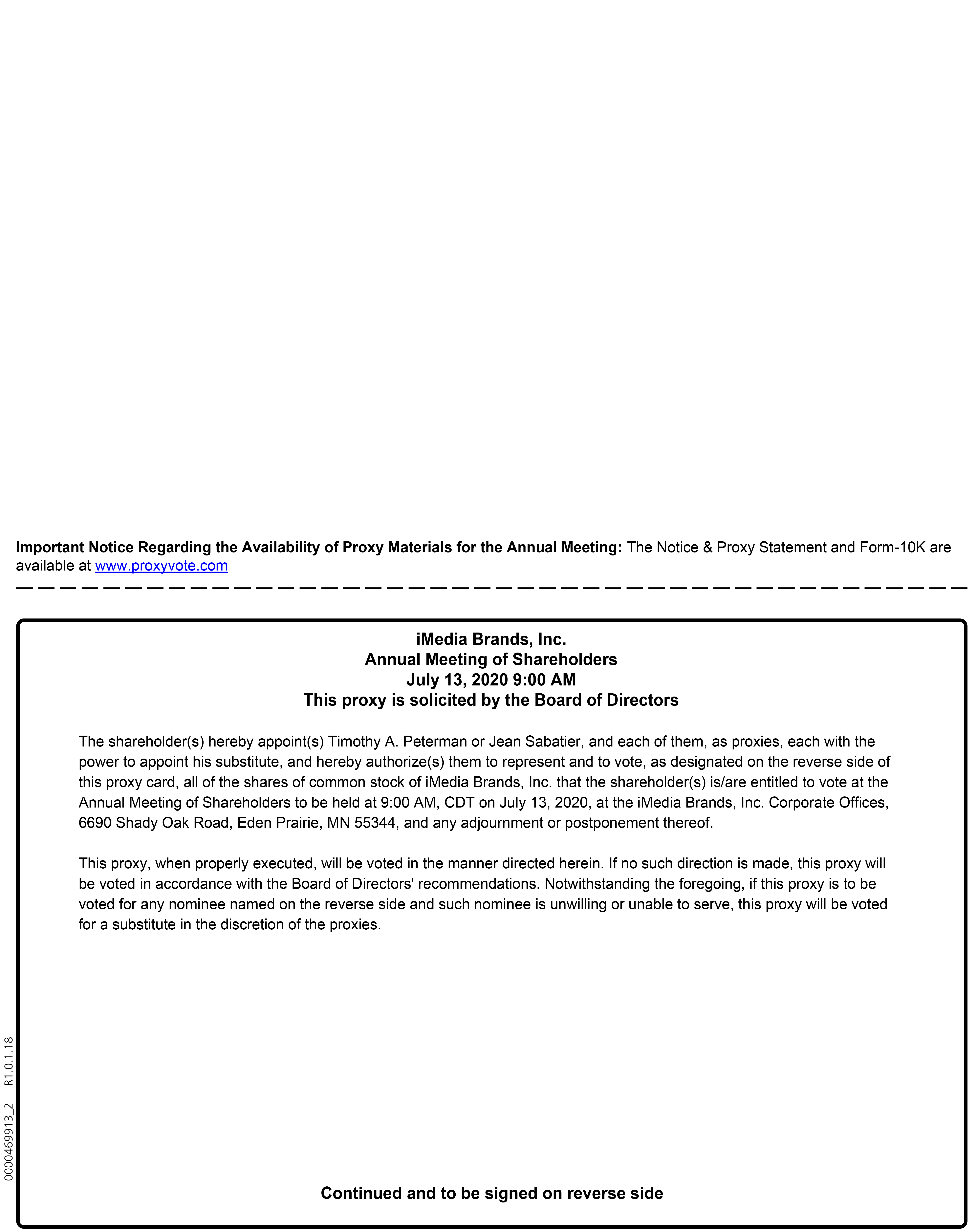 You are cordially invited to attend the Annual Meeting of Shareholders (the “Annual Meeting”) of iMedia Brands,