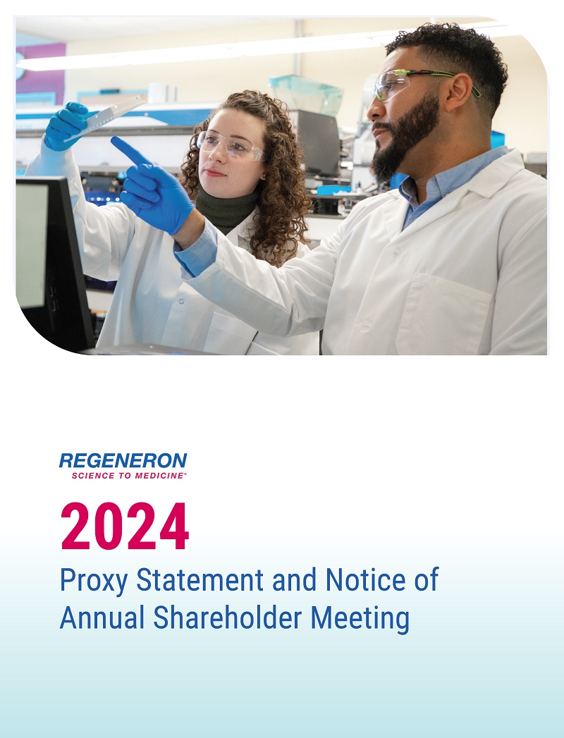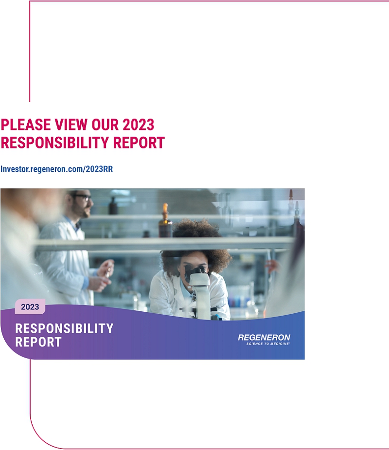 NOTE REGARDING TRADEMARKS AND PRODUCT NAMES: “ARCALYST®,” “Evkeeza®,” “EYLEA®,” “EYLEA® HD,” “Inmazeb®,” “Libtayo®”, “Praluent®” (in the United States), “REGEN-COV®,” Regeneron®,” “Regeneron Genetics Center®,” “Veopoz®,” “VelociGene®,” “VelocImmune®,” and “ZALTRAP®” are trademarks of Regeneron Pharmaceuticals, Inc. (“Regeneron”). This proxy statement refers to products marketed or otherwise commercialized by Regeneron, its collaborators, and other parties. Consult the product label in each territory for specific information about such products.