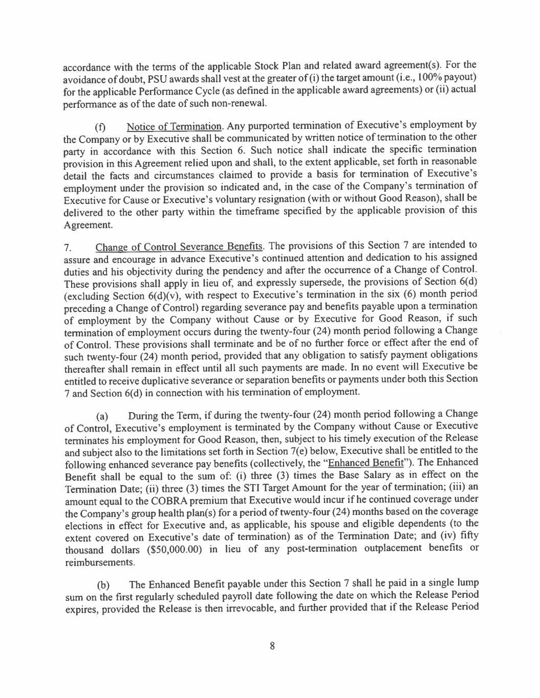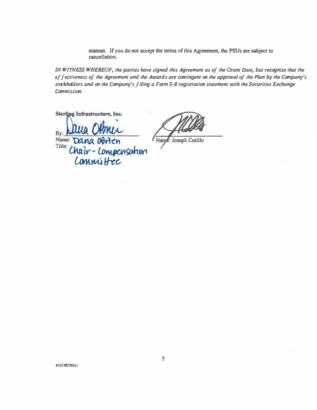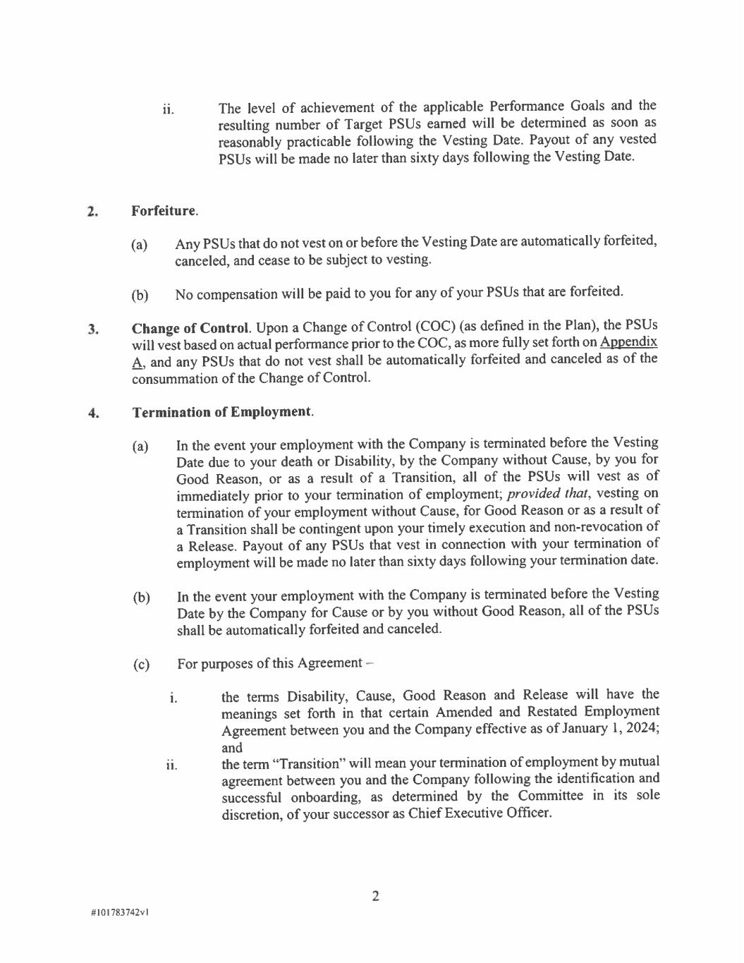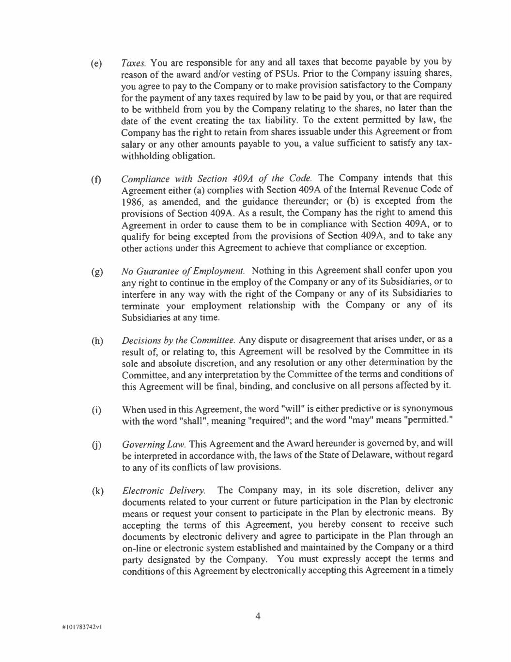maimer. If you do not accept the tenns of this Agreement. the PS Us are subject to cancellation. IN WITNESS WHEREOF, the parties have signed this Agreement as of the Grant Date, but recognize that the effectiveness of the Agreement and the Awards are contingent on the approval of the Plan by the Company’s stockholders and on the Company’s filing a Form S-8 registration statement with the Securities Exchange Commission. #101713742¥1
