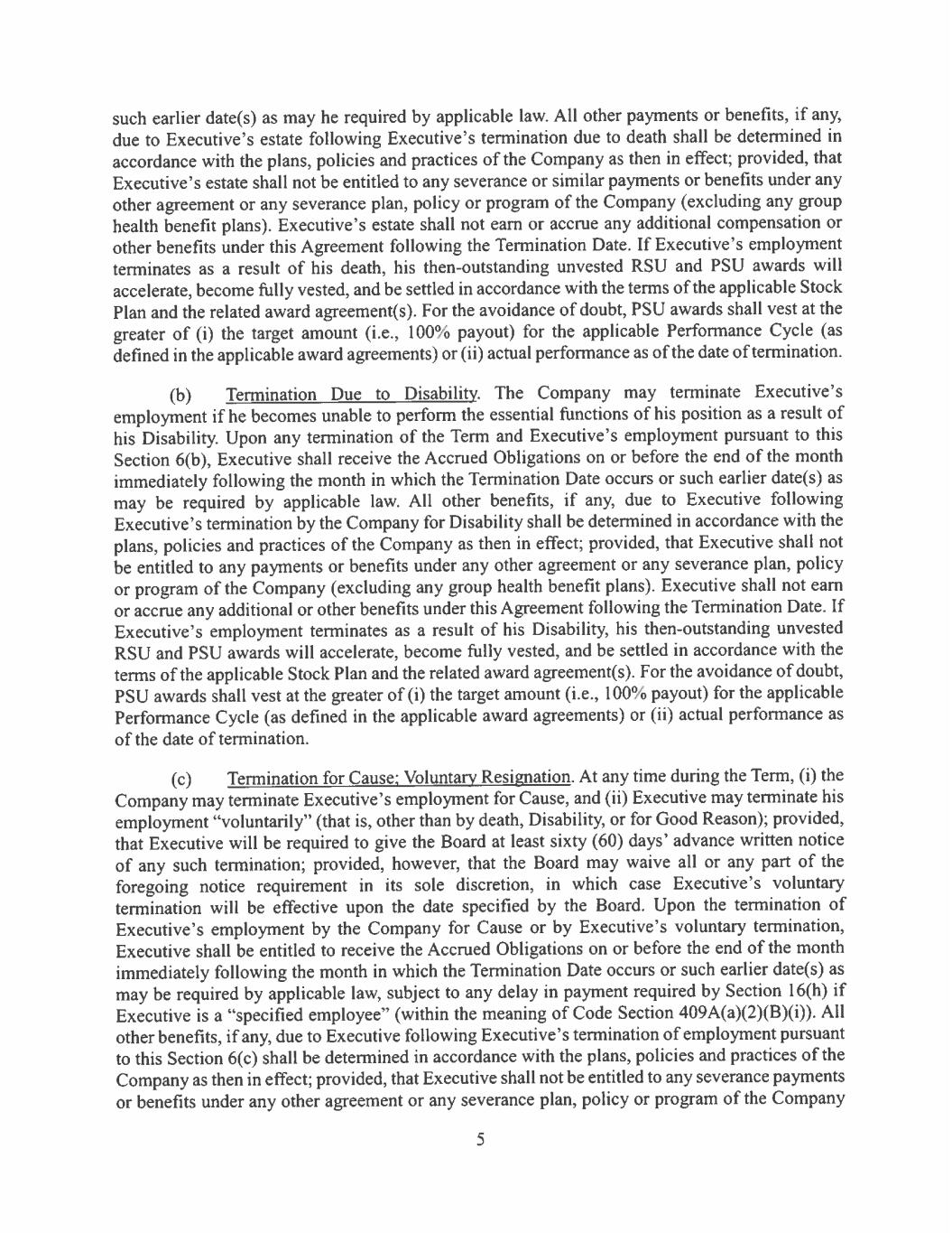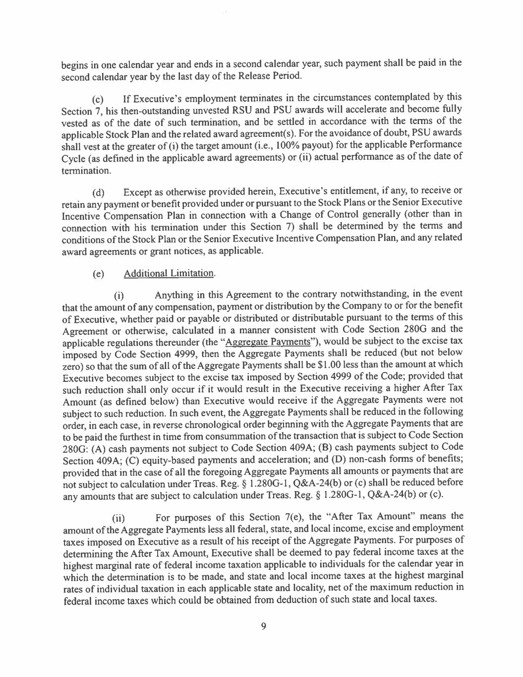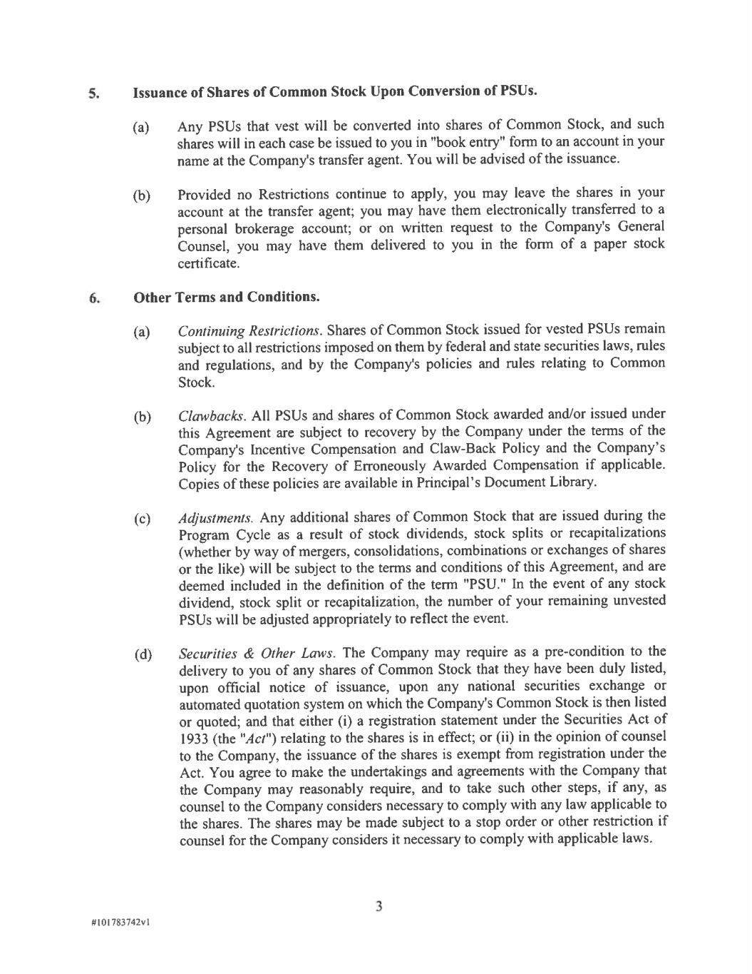 maimer. If you do not accept the tenns of this Agreement. the PS Us are subject to cancellation. IN WITNESS WHEREOF, the parties have signed this Agreement as of the Grant Date, but recognize that the effectiveness of the Agreement and the Awards are contingent on the approval of the Plan by the Company’s stockholders and on the Company’s filing a Form S-8 registration statement with the Securities Exchange Commission. #101713742¥1
