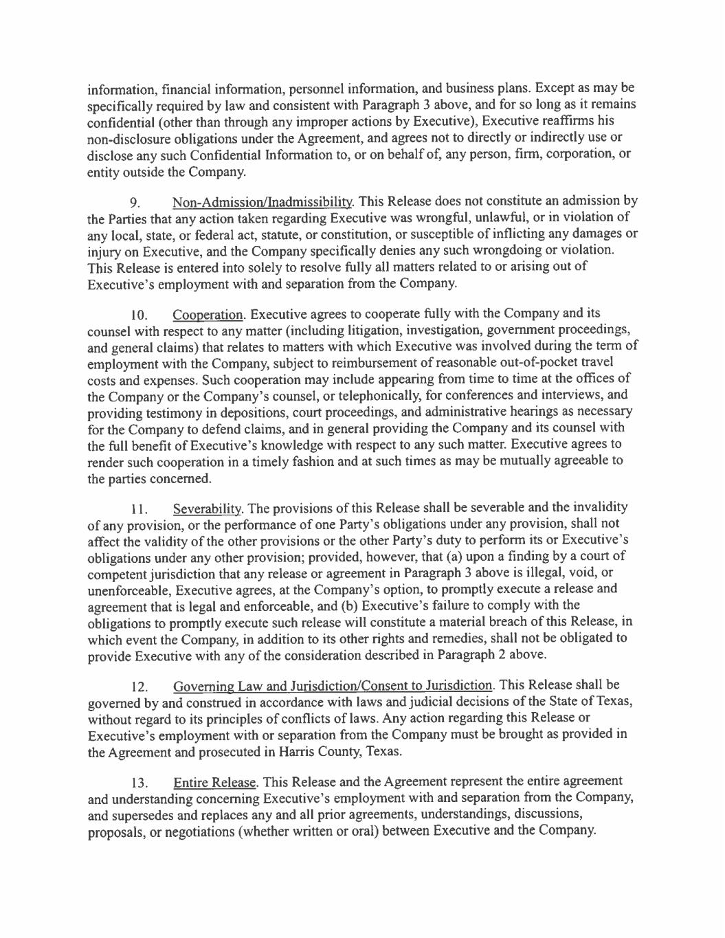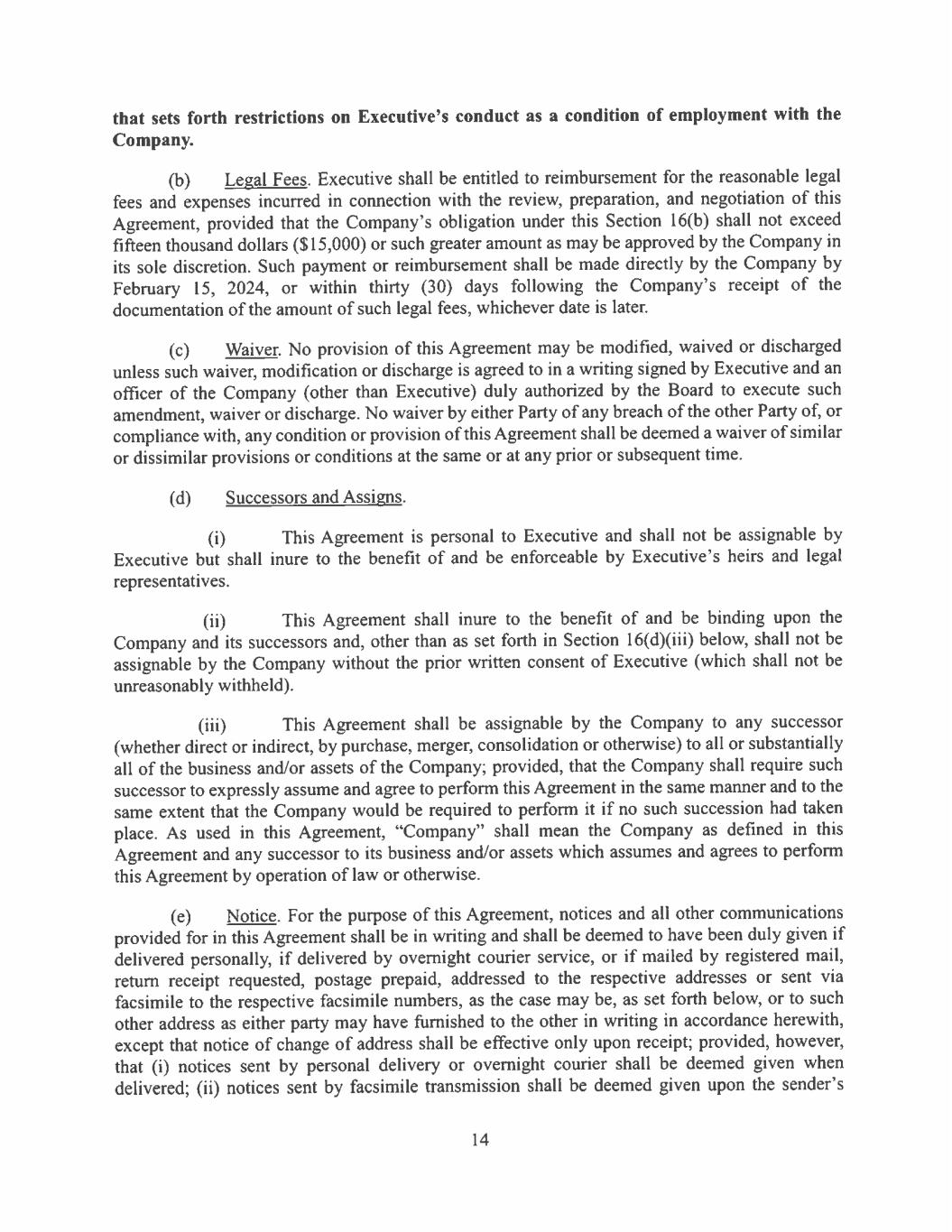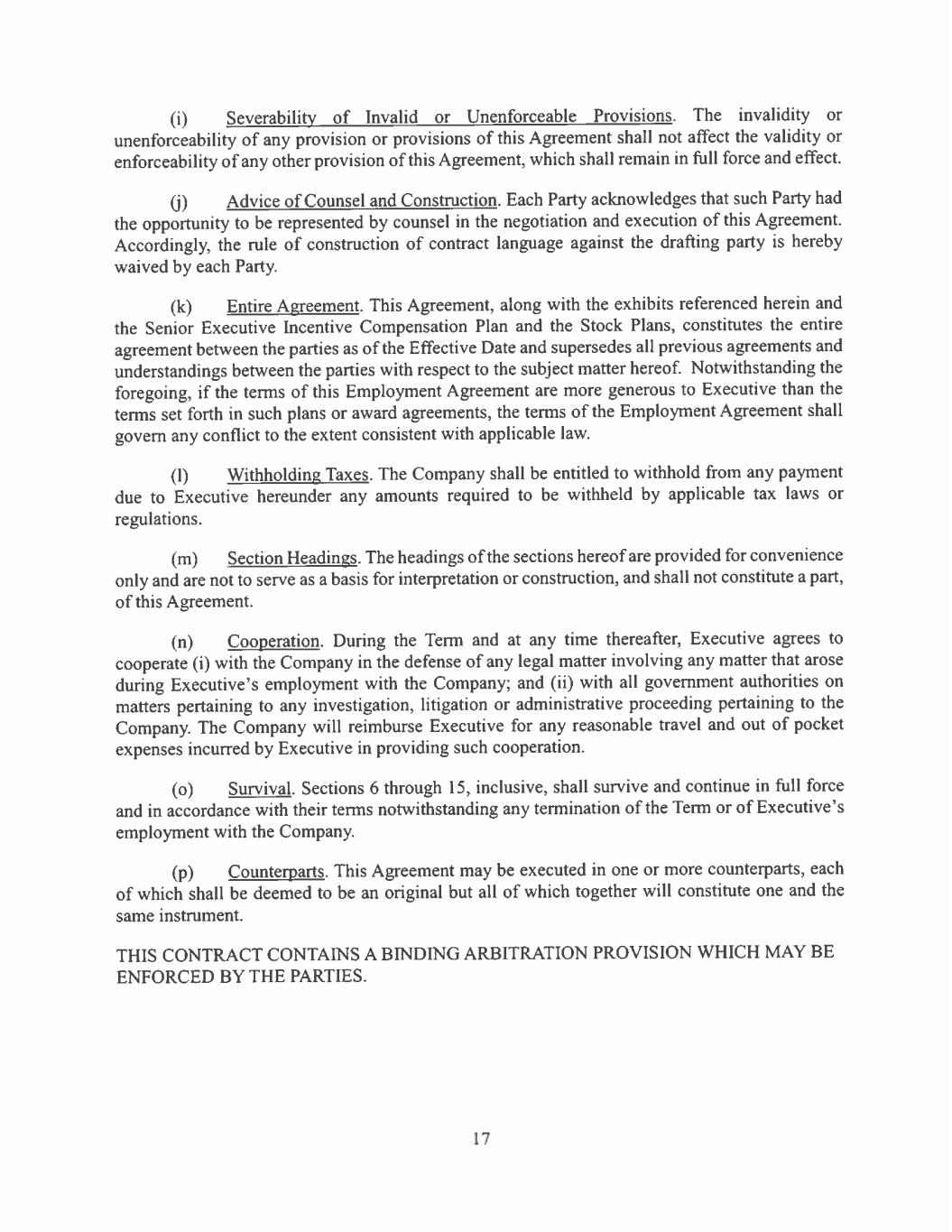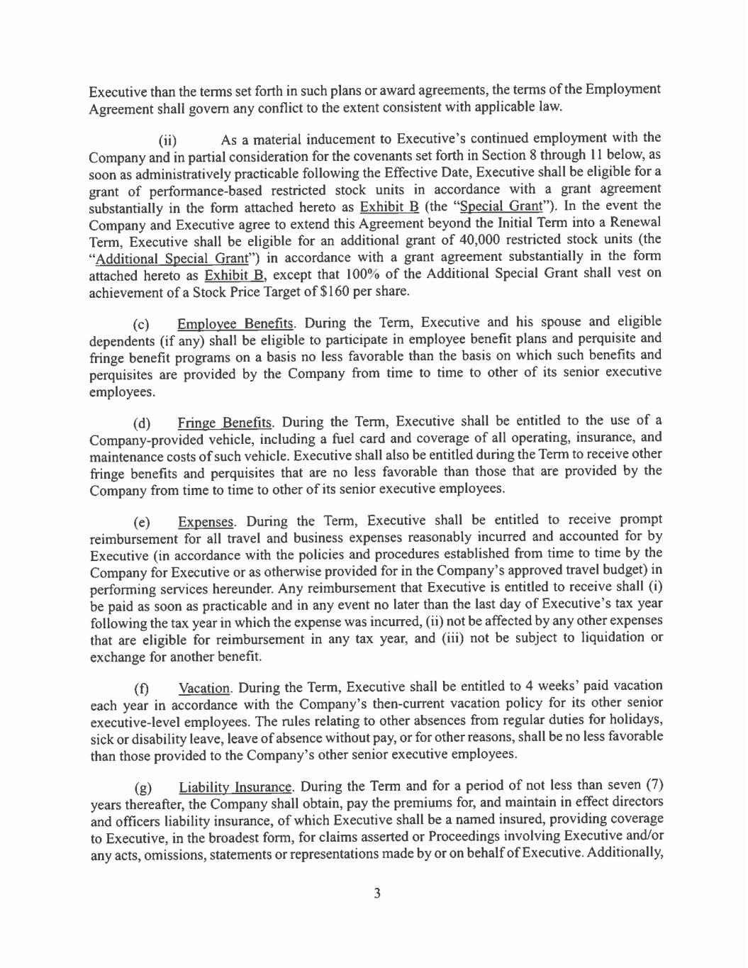 maimer. If you do not accept the tenns of this Agreement. the PS Us are subject to cancellation. IN WITNESS WHEREOF, the parties have signed this Agreement as of the Grant Date, but recognize that the effectiveness of the Agreement and the Awards are contingent on the approval of the Plan by the Company’s stockholders and on the Company’s filing a Form S-8 registration statement with the Securities Exchange Commission. #101713742¥1