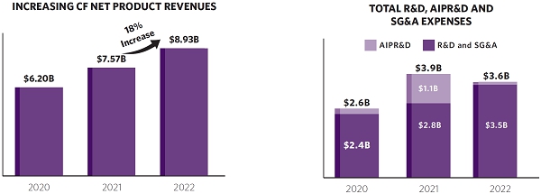 Our CF net product revenues increased to $8.93 billion in 2022, up 18% or approximately $1.4 billion, from our 2021 net product revenues. |