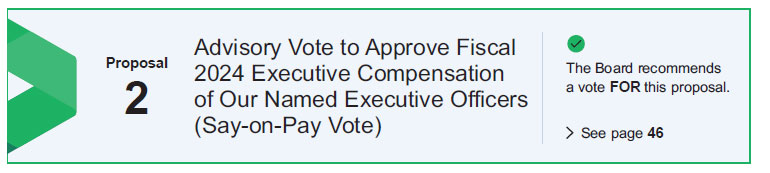 | • | FOR Proposal Two — approve the advisory vote on the fiscal 2024 compensation of our named executive officers (say-on-pay vote) |