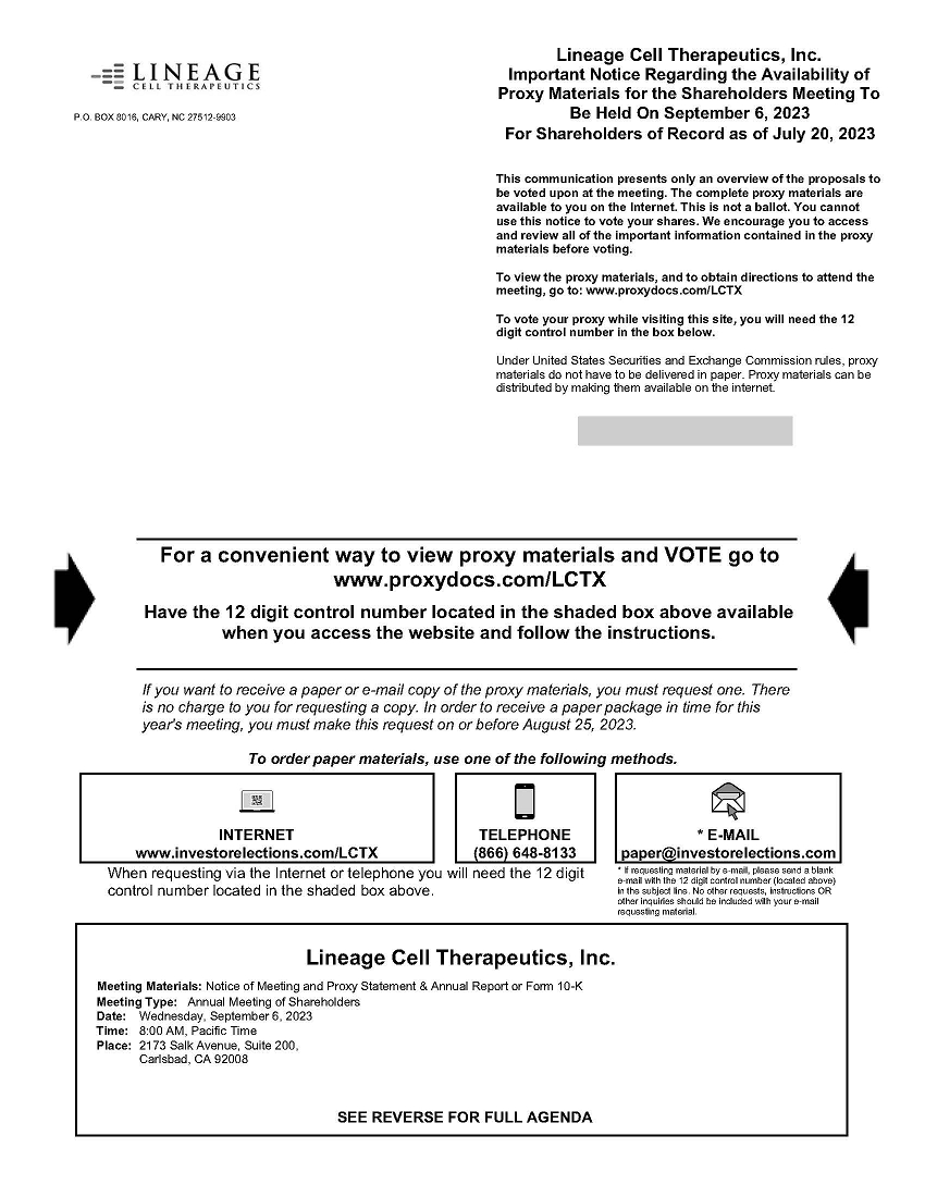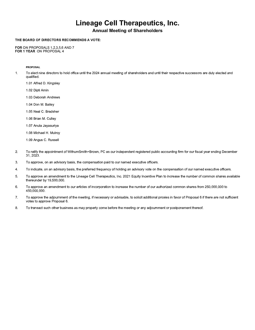 Lineage Cell Therapeutics, Inc.