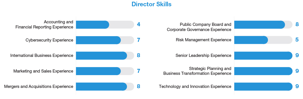 The Board and the Nominating and Governance Committee believe our director nominees possess the skills, experience and qualifications necessary to effectively provide oversight and support management’s execution of our long-term strategic goals. |