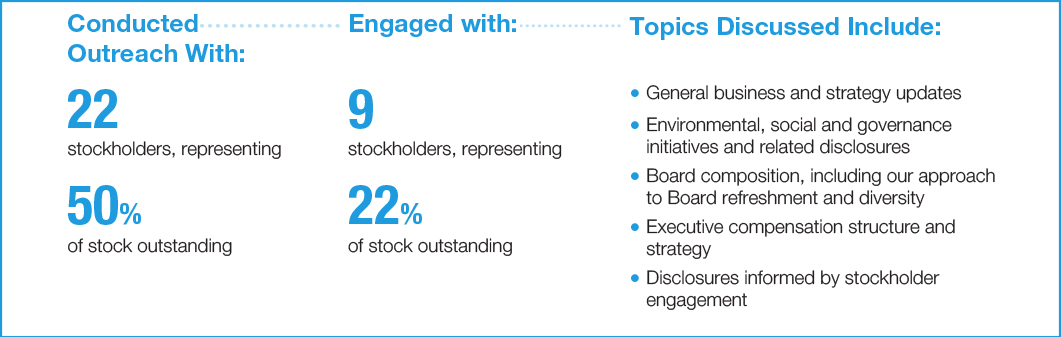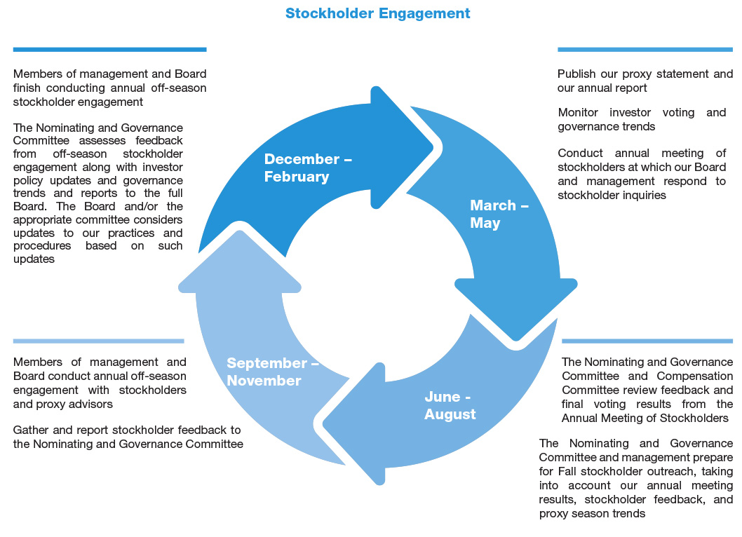 Adding disclosure about our annual stockholder engagement cycle (see Stockholder Engagement on page 22) |
