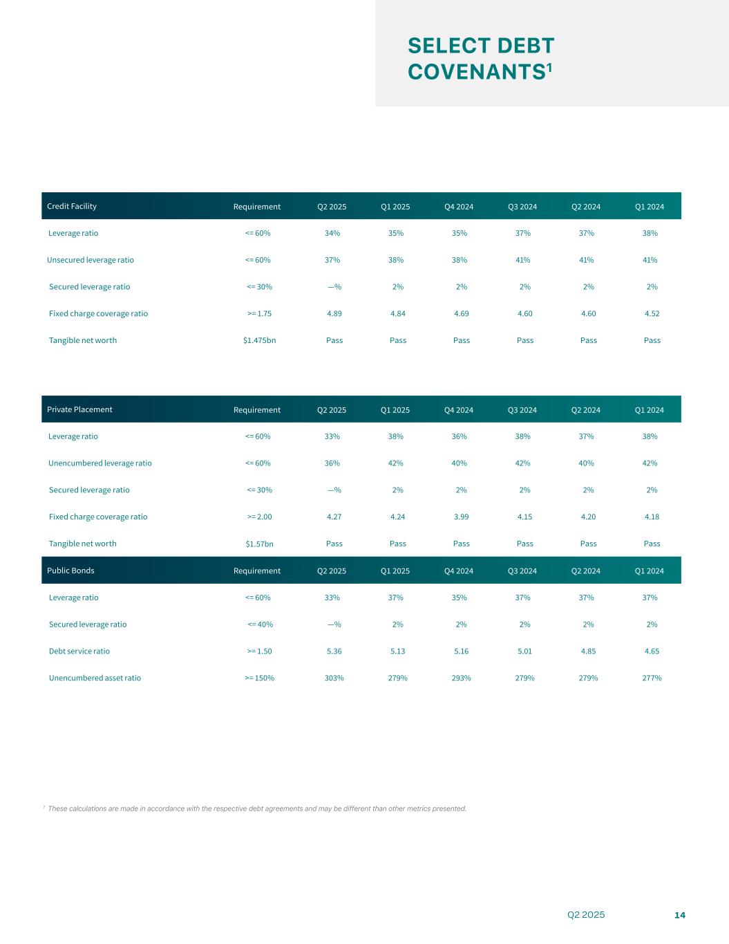 14Q2 2025 (DOLLARS IN MILLIONS) œ ”Š‹ ¯ ’ƒƒ…ƒ ’ƒ…ƒ ’„ƒ…ƒ„ ’€ƒ…ƒ„ ’ƒƒ…ƒ„ ’ƒ…ƒ„ ²³‰… €„ € € €† €† € Š ²³‰… €† € € „ „ „ Š ²³€… ª ƒ ƒ ƒ ƒ ƒ ”™ ŠŽ Š ´³‡† „‡ „‡„ „‡‰ „‡‰… „‡‰… „‡ƒ ‘ —Ž ‚‡„†‘ Š ¯ ’ƒƒ…ƒ ’ƒ…ƒ ’„ƒ…ƒ„ ’€ƒ…ƒ„ ’ƒƒ…ƒ„ ’ƒ…ƒ„ ²³‰… €€ € €‰ € €† € Š‘ ²³‰… €‰ „ƒ „… „ƒ „… „ƒ Š ²³€… ª ƒ ƒ ƒ ƒ ƒ ”™ ŠŽ Š ´³ƒ‡…… „‡ƒ† „‡ƒ„ €‡ „‡ „‡ƒ… „‡ ‘ —Ž ‚‡†‘ ‘Š¡ ¯ ’ƒƒ…ƒ ’ƒ…ƒ ’„ƒ…ƒ„ ’€ƒ…ƒ„ ’ƒƒ…ƒ„ ’ƒ…ƒ„ ²³‰… €€ €† € €† €† €† Š ²³„… ª ƒ ƒ ƒ ƒ ƒ ‘ Š ´³‡… ‡€‰ ‡€ ‡‰ ‡… „‡ „‡‰ Š‘ ´³… €…€ ƒ† ƒ€ ƒ† ƒ† ƒ†† 1 These calculations are made in accordance with the respective debt agreements and may be different than other metrics presented. SELECT DEBT COVENANTS1