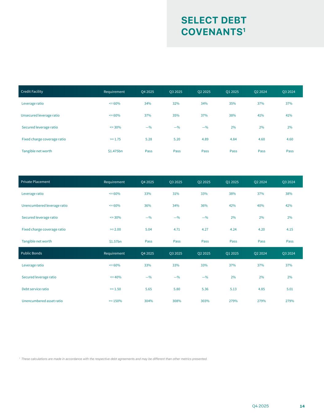 14Q4 2025 (DOLLARS IN MILLIONS) ž •Š‹ ª “„€ “…€ “€ “€ “„ “…„ ®¯† …„ … …„ …€ …‡ …‡ Š ®¯† …‡ …€ …‡ …ƒ „ „ Š ®¯… ¨ ¨ ¨ •š ŠŽ Š °¯ˆ‡€ €ˆƒ €ˆ „ˆƒ „ˆƒ„ „ˆ† „ˆ† ‘ ˜Ž ‚ˆ„‡€‘ Š ª “„€ “…€ “€ “€ “„ “…„ ®¯† …… … …… …ƒ …‡ …ƒ Š‘ ®¯† …† …„ …† „ „ „ Š ®¯… ¨ ¨ ¨ •š ŠŽ Š °¯ˆ €ˆ„ „ˆ‡ „ˆ‡ „ˆ„ „ˆ „ˆ€ ‘ ˜Ž ‚ˆ€‡‘ ‘Š¢ ª “„€ “…€ “€ “€ “„ “…„ ®¯† …… …… …… …‡ …‡ …‡ Š ®¯„ ¨ ¨ ¨ ‘ Š °¯ˆ€ €ˆ†€ €ˆƒ €ˆ…† €ˆ… „ˆƒ€ €ˆ Š‘ °¯€ …„ …ƒ …… ‡ ‡ ‡ 1 These calculations are made in accordance with the respective debt agreements and may be different than other metrics presented. SELECT DEBT COVENANTS1