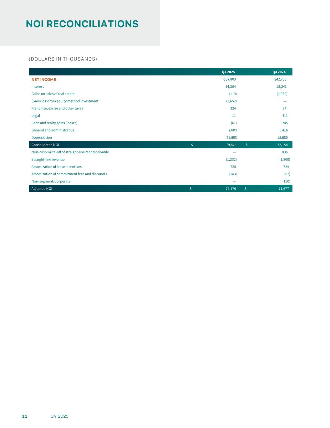20Q4 2025 NOI RECONCILIATIONS NOI SEGMENT RECONCILIATION ” Š ‚ „… † ‚ „ †… ‰ €€ …… ‡€ †ƒ „€ ” ‚ †‡ ‡€ ‚ † … • … ‡ „ „ š … „† ‡€„ ‡ …… … € Š Ž „ ƒƒ € †† ‚ ‡ ƒ† ‚ ‡ €„ NOI TO ADJUSTED NOI RECONCILIATION ”ŠŽ˜ ” ́ Ž” Š ‘ ¨ ƒ…† Ž” … ƒ Š ‡€ ‡„ Š Š „… ƒ‡ ” ¤ž ¨ € ‚ ‡ ‡† ‚ ‡ †‡‡ (DOLLARS IN THOUSANDS)