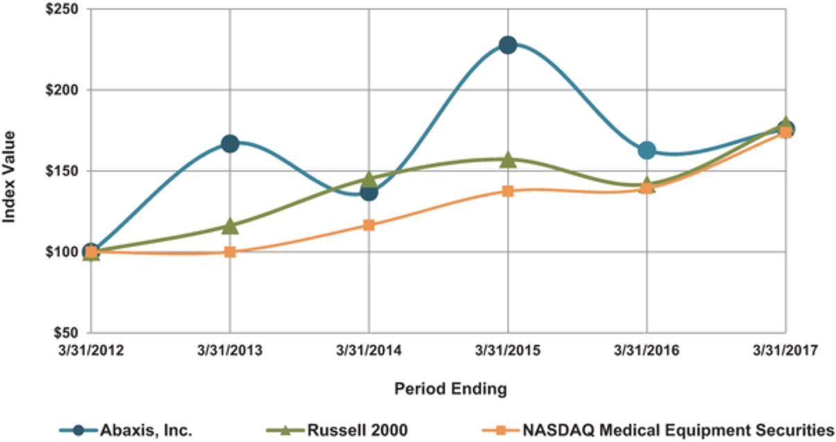 When used in this report, the terms “we,” “us,” “our,” “the Company” and “Abaxis” refer to Abaxis, Inc. and our subsidiaries. Our fiscal year ends on March 31, and accordingly, the terms “fiscal 2017,” “fiscal 2016” and “fiscal 2015” in this report refer to the years ended March 31, 2017, 2016 and 2015, respectively.