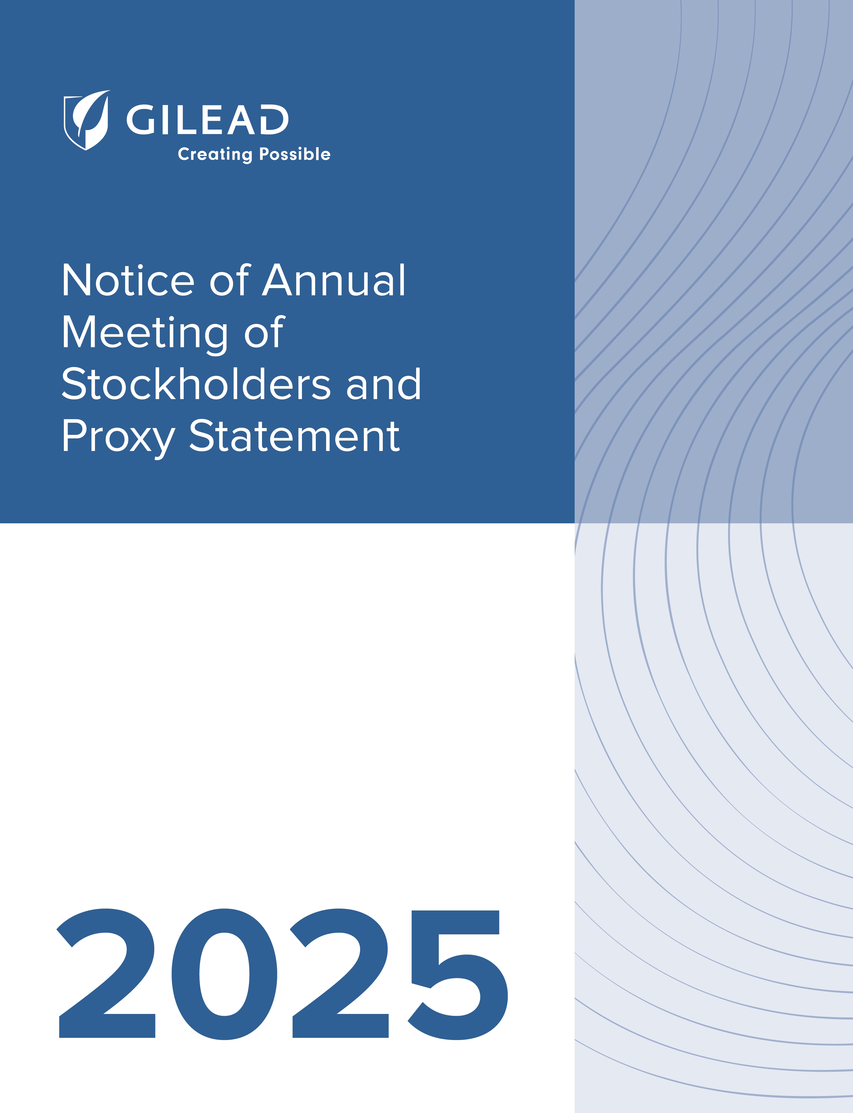 We are providing these proxy materials in connection with the solicitation by the Board of Directors (the “Board”) of Gilead Sciences, Inc., a Delaware corporation (“Gilead,” the “Company,” “we,” “our” or “us”), of proxies to be voted at our 2025 annual meeting of stockholders (the “Annual Meeting”) to be held on Wednesday, May 7, 2025, at 10:00 a.m., Pacific Daylight Time, or at any adjournment or postponement thereof, for the matters set forth above.