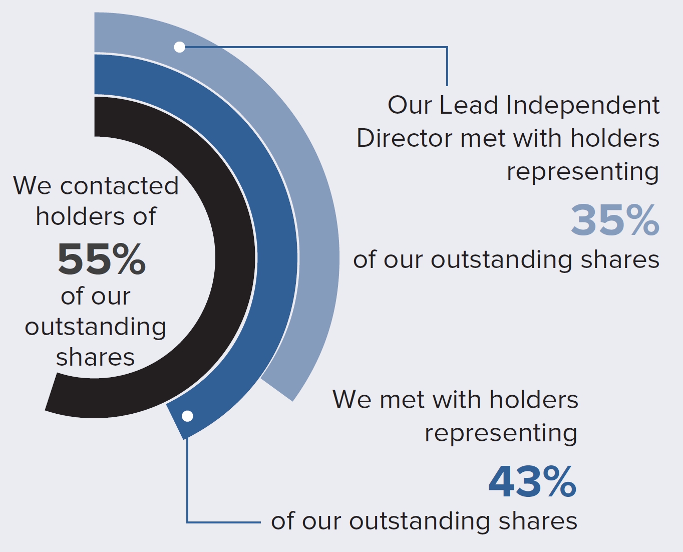 I have been a member of Gilead’s Board of Directors since 2020, and as a result of our thoughtful succession planning processes last year, the Board elected me to serve as the company’s new Lead Independent Director. On behalf of the Board, we are grateful for the leadership of our former Lead Independent Director, Kevin E. Lofton, who retired in 2024. In my first year in the role, I have reiterated my commitment to representing stockholder interests and maintaining ongoing and productive dialogue with stockholders. I am also continuing to work closely with Chairman and Chief Executive Officer Daniel O’Day and the full management team on the strategic direction and oversight of the company. Together, we facilitate the Board’s input into major business and organizational initiatives, budgetary considerations, capital allocation priorities and corporate development opportunities.