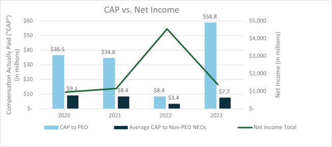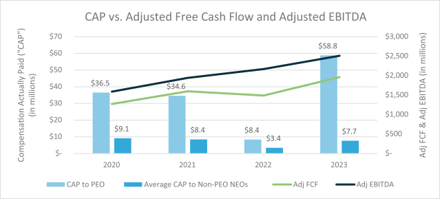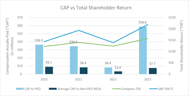 | • | Pay for Performance. Similar to prior years, in 2023, total direct compensation at target that was at risk and tied to stock price and performance objectives was 95% for the CEO, and 89% on average for our other named executive officers. |