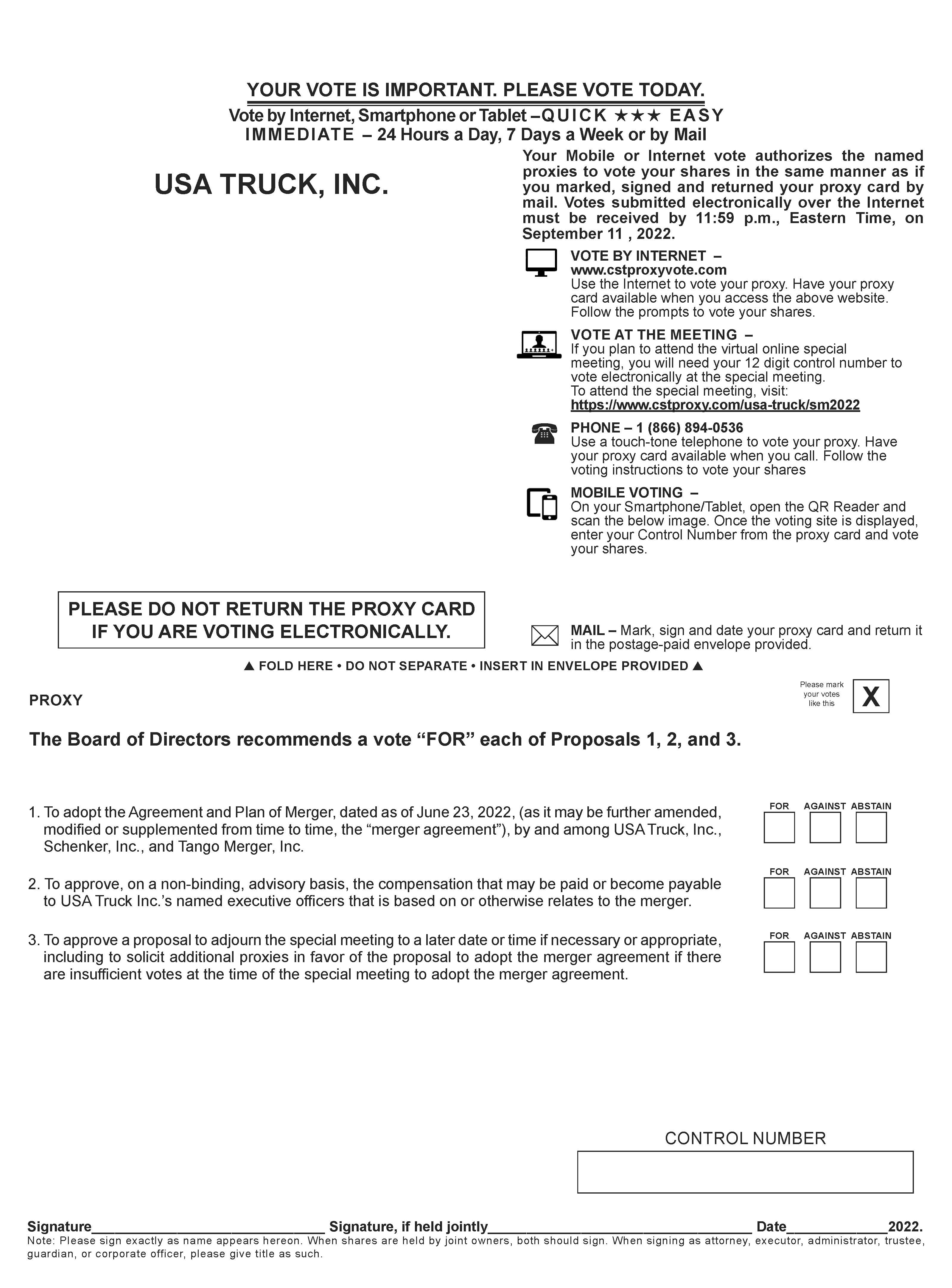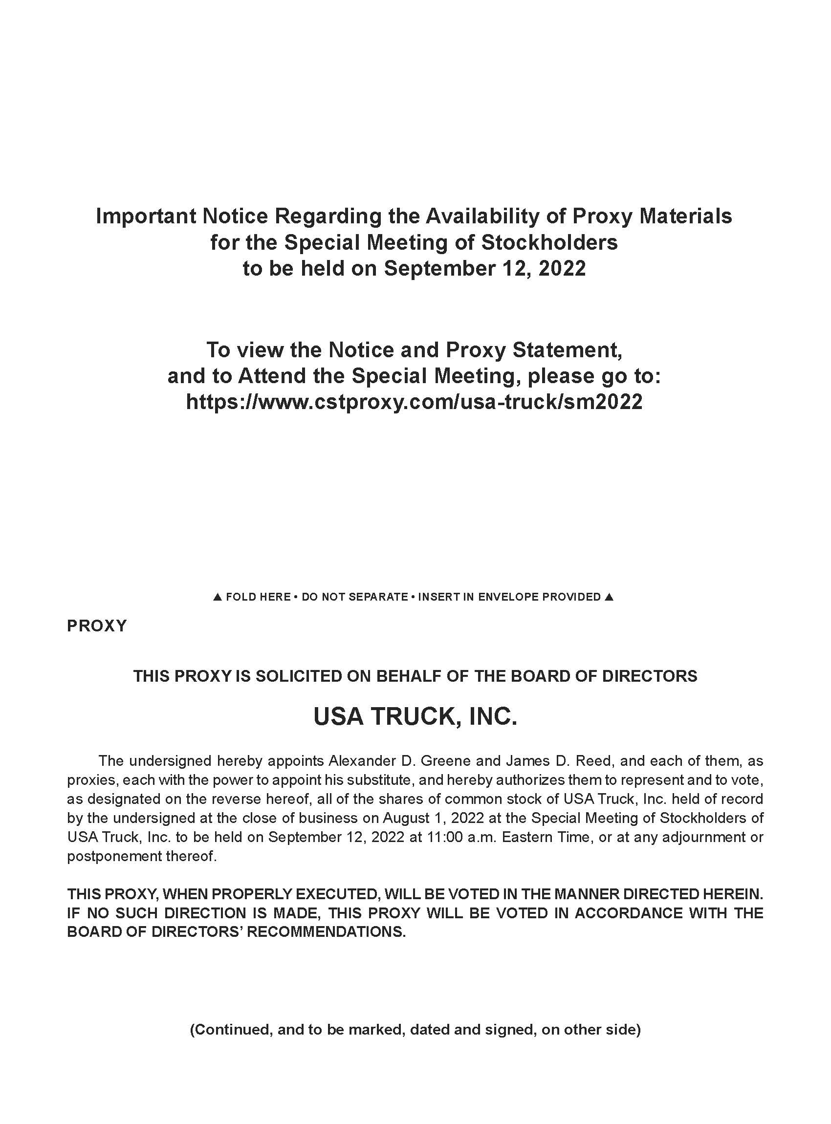 this proxy statement incorporates by reference important business and financial information about USA Truck, Inc. You may obtain the information incorporated by reference in this proxy statement without charge by following the instructions in