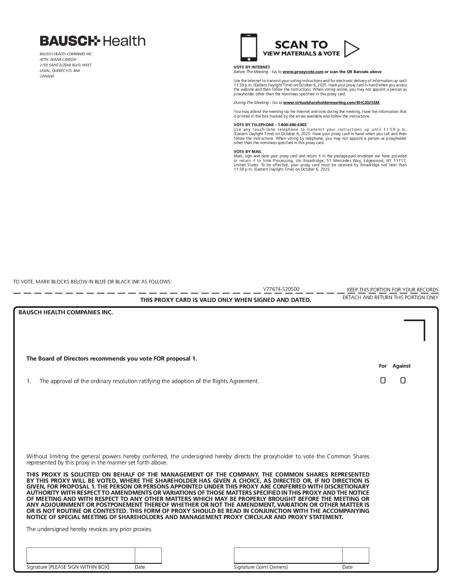 By mail: Complete, sign and date each proxy card you received, and return it in the prepaid envelope to Vote Processing, c/o Broadridge, 51 Mercedes Way, Edgewood, New York 11717, United States. Broadridge must receive your proxy card not later than 11:59 p.m. (Eastern Daylight Time) on Monday, October 6, 2025 in order for your vote to be counted if sent in by mail. If the Meeting is adjourned or postponed, Broadridge must receive your proxy card at least 48 hours, excluding Saturdays, Sundays and applicable holidays, before the rescheduled or reconvened Meeting.