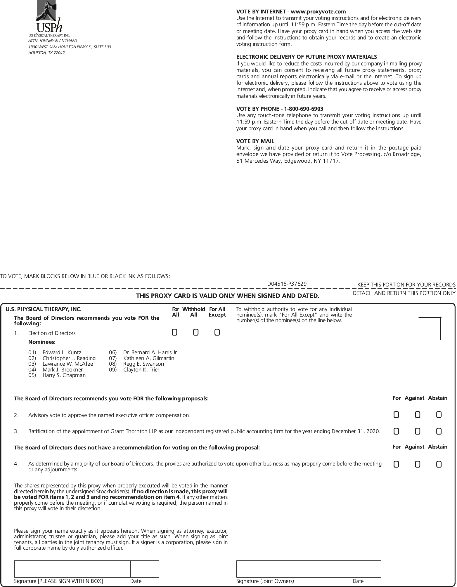 The persons named on the proxy card will vote FOR all of the nominees for director listed above unless you withhold authority to vote for one or more of the nominees. Under current regulations, a broker is prohibited from voting for directors without receiving instructions from you. As required by Nevada law, nominees will be elected by a plurality of the votes cast at the Annual Meeting. Abstentions and broker non-votes will not be treated as a vote for or against any particular nominee and will not affect the outcome of the election of directors. However, pursuant to the Company’s Corporate Governance Guidelines, in any uncontested election of directors, a nominee who receives more “withhold” votes than FOR votes shall tender his or her resignation to the Board. The Governance and Nominating Committee of the Board of Directors will promptly accept such resignation unless there are, in its opinion, highly unusual or mitigating circumstances, in which case the Nominating and Governance Committee may, by unanimous vote of its disinterested members, recommend to the Board to reject the tendered resignation, and the Board will promptly act on, without being bound to accept, that recommendation.
