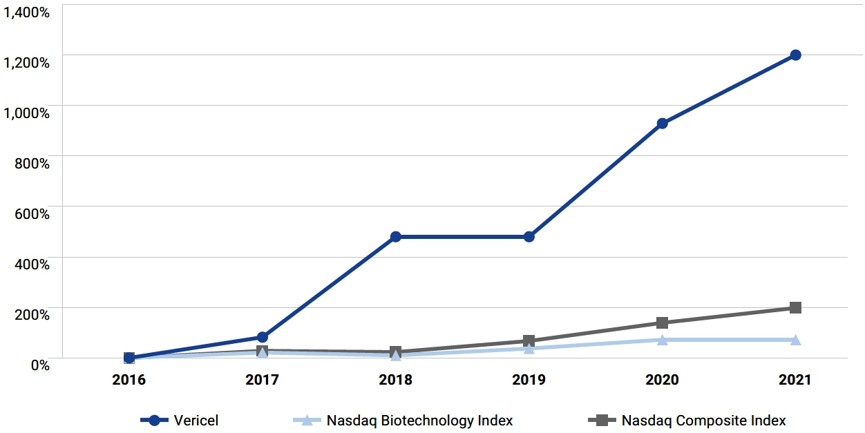 |  | We are very pleased that Vericel delivered another year of strong revenue and operating cash flow growth in 2021 despite the continued impacts of COVID-19 throughout the year. The Company generated record total revenue for the year and delivered record product volumes and revenue for both MACI® and Epicel® in 2021. In addition to this strong revenue performance, the Company generated significant cash flow as we reported positive adjusted EBITDA for the fourth consecutive year and increased operating cash flow over 60% vs. 2020. Most importantly, our continued growth has helped more patients benefit from our innovative advanced cell therapy products as we pursue our passion of helping treat those suffering from cartilage and severe burn injuries. MACI is the leading restorative cartilage repair product used by orthopedic surgeons to treat patients with large symptomatic focal cartilage defects in the knee. In its fifth year on the market, we continued to see significant growth in the MACI surgeon base with approximately 1,800 surgeons taking MACI biopsies in 2021, an increase of 20% from 2020. Overall biopsies increased by 30% in 2021, driven both by the growth in biopsy surgeons and higher penetration within each surgeon’s practice. MACI revenue grew 18% to $111.6 million in 2021, an increase of over 20% compared to pre-pandemic levels in 2019, while we estimate the overall cartilage repair market declined during that period. Our expectation is that MACI’s growth rate will increase in 2022, driven by continued growth in surgeons taking biopsies, further gains in penetration of surgical practices and improving biopsy conversion rates as we move beyond the significant COVID-19 impacts over the past two years. More broadly, given the potential $2 billion addressable market, the continued strength in MACI’s underlying growth drivers, and its strong reimbursement profile, we believe that MACI is well positioned to continue its strong growth trajectory in 2022 and beyond. In addition, we continue to advance important lifecycle management initiatives for MACI. We expect to meet with the U.S. Food & Drug Administration (FDA) later this year to discuss the clinical development program for our custom arthroscopic delivery system, which we believe offers the potential to make MACI an even simpler and less invasive procedure for surgeons and patients and to expand the use of MACI for the treatment of cartilage defects in the knee. We also continue to advance our MACI ankle indication program, which we believe could increase our overall MACI addressable market to approximately $3 billion. Epicel is a potentially life-saving product used by burn surgeons to treat patients with large total body surface area burns. Epicel revenue grew over 50% to $41.5 million in 2021. This strong performance was driven by growth in the number of burn centers using Epicel, an increase in the number of patients treated, and higher graft utilization per patient. We believe that this strength across key growth drivers will continue to help drive further pentetration into Epicel’s $200 million plus addressable market in the years ahead, given the significant opportunity to grow the number of centers using Epicel, and to continue to drive additional utilization within the current user base. | |