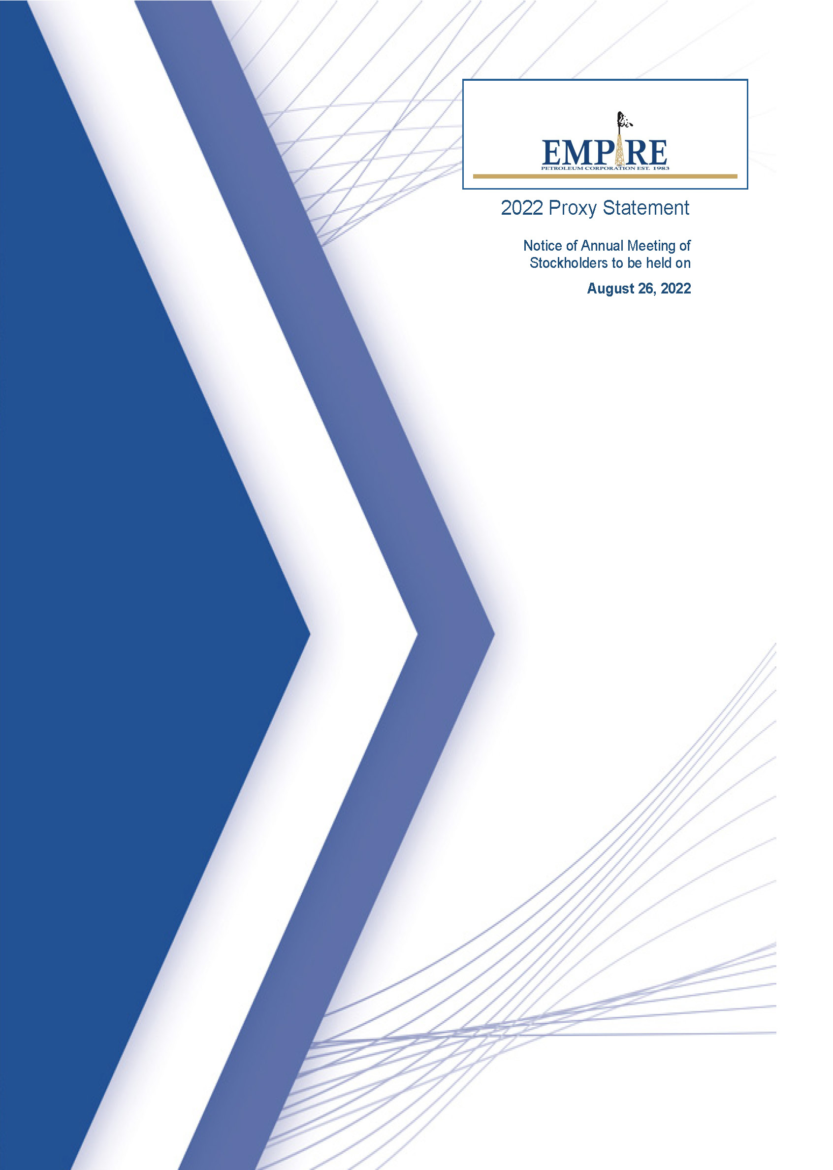 Important Notice Regarding the Availability of Proxy Materials for the 2022 Annual Meeting of Stockholders to be Held on August 26, 2022: Stockholders may view the accompanying proxy statement, our form of proxy and our 2021 Annual Report to Stockholders over the Internet by accessing our website at https://empirepetroleumcorp.com.