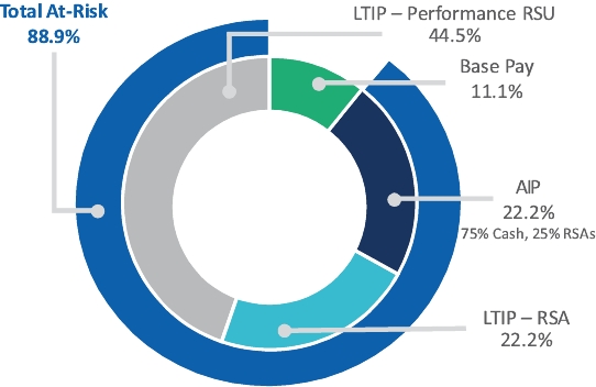 Annual Incentive Pay (“AIP”) Program | Short-term cash incentive with variable payout opportunities based on Adjusted EPS, Adjusted EBITDA and individual performance measured against annual performance goals. No changes to the types of AIP performance measures and target values as a multiple of base salary payout opportunities for our CEO in 2024. AIP target opportunity for our other NEOs increased from 1.0x base salary in 2023 to 1.25x base salary in 2024. | |||||||