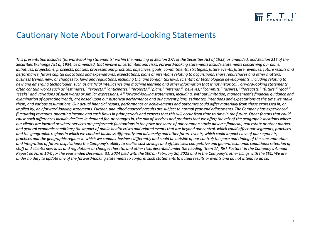 .3 FTI Consulting, Inc. Second Quarter 2025 Earnings Conference Call July 24, 2025