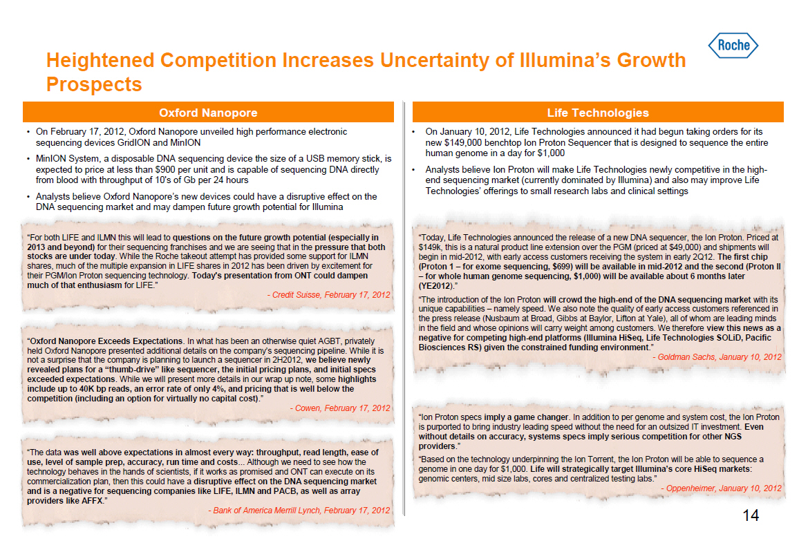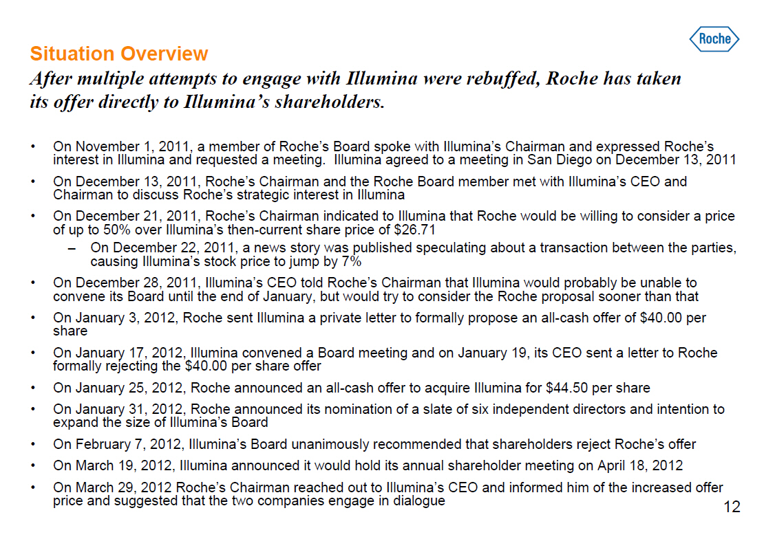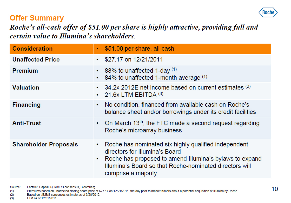 Roche's Offer to Acquire Illumina Presentation to Investors March 2012 |