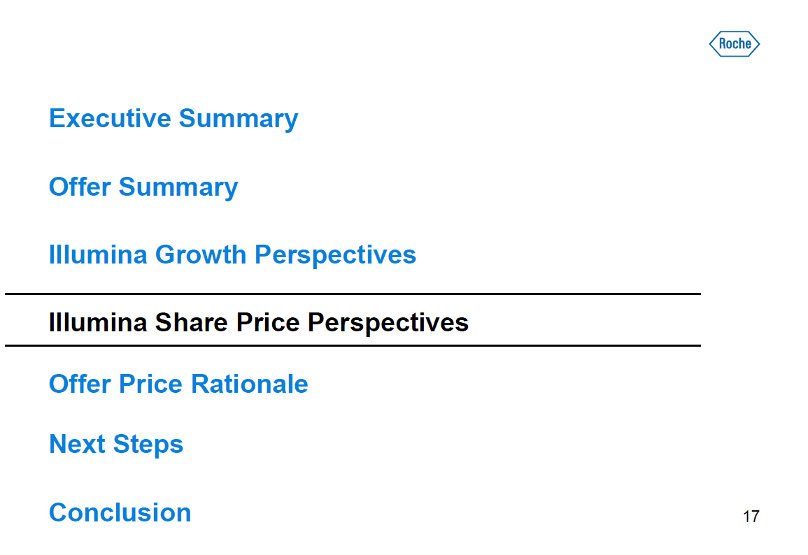 Executive Summary Offer Summary Illumina Growth Perspectives Illumina Share Price Perspectives Offer Price Rationale Next Steps Conclusion 17 |