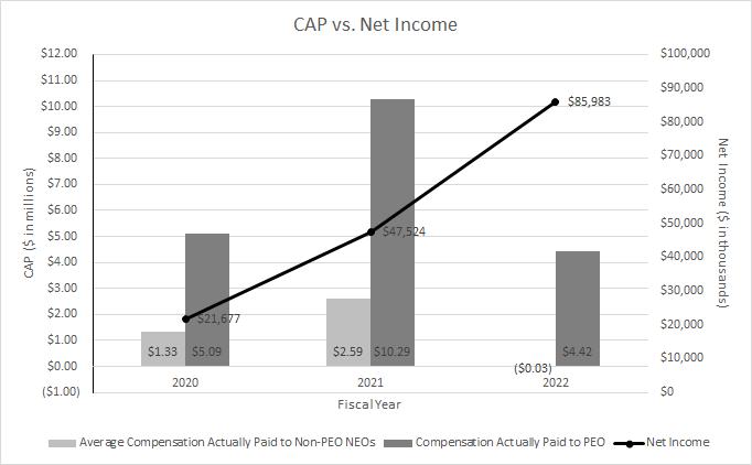 The graph below shows the relationship between (i) the CAP to our PEO and the average CAP to the non-PEO NEOs, and (ii) the Company’s net income during the last three completed fiscal years.