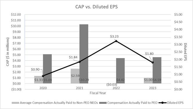 The graph below shows the relationship between (i) the CAP to our PEO and the average CAP to the non-PEO NEOs, and (ii) the Diluted EPS.