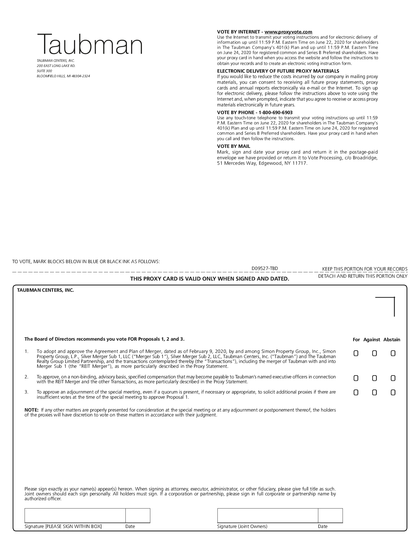 | | | | | 61,608,379 shares of Taubman common stock | ||