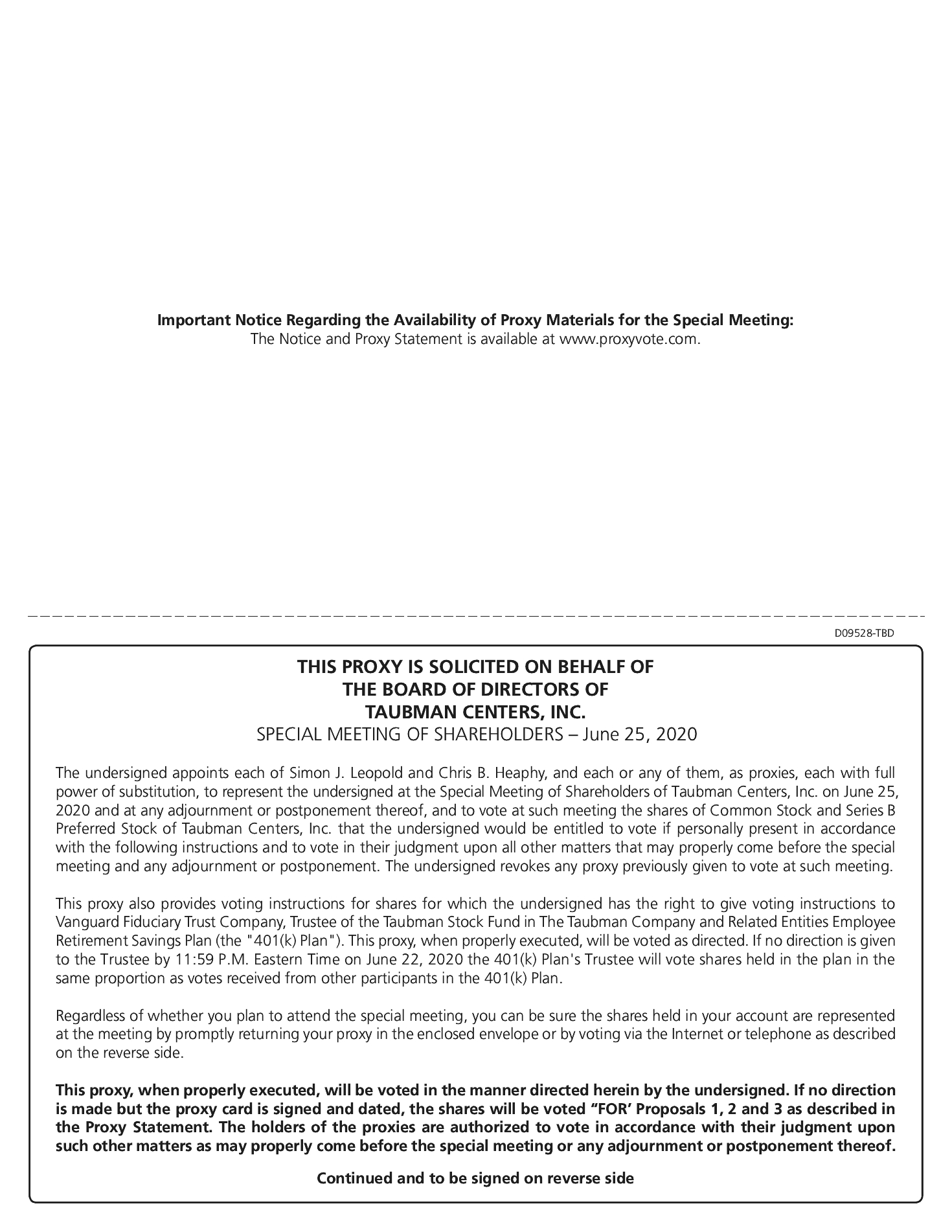| | | | | 598,189 shares of Taubman common stock subject to issuance upon the settlement of outstanding equity awards pursuant to the Taubman Stock Plans (as defined below). | ||
