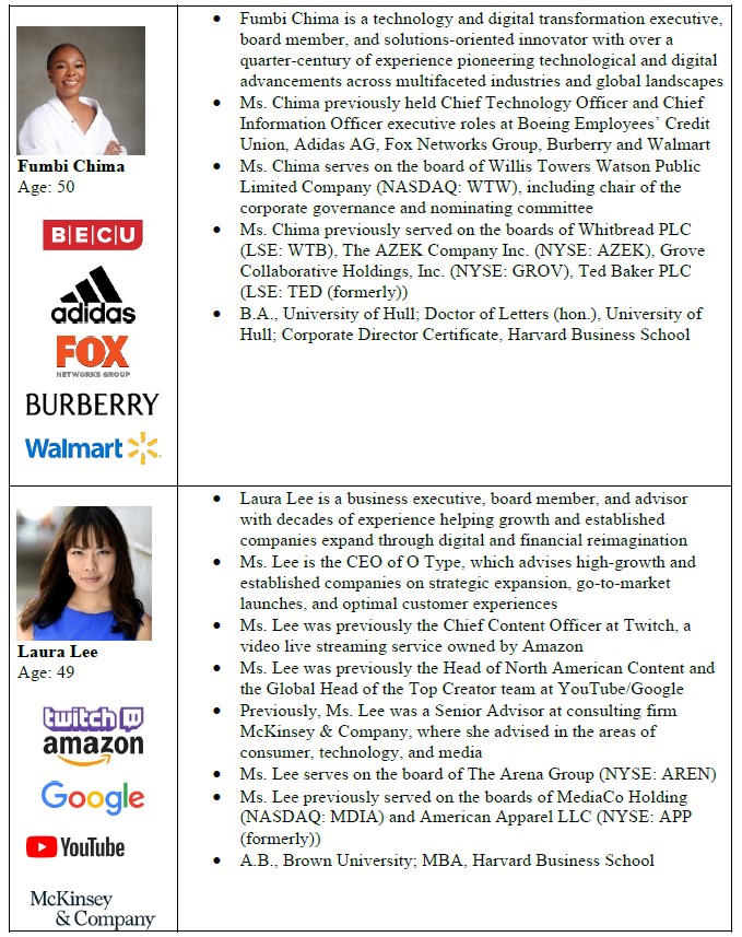 Anson Funds Management LP, Anson Advisors Inc., Anson Investments Master Fund LP, AIMF GP LLC, Anson East Master Fund LP, AEMF GP LLC, Anson North Star Tactical Equity Fund LP, ANSF GP LLC, Anson Management GP LLC, Moez Kassam, Tony Moore, Amin Nathoo, Sagar Gupta, Funmibi (Fumbi) Chima, Laura Lee and Kelley Morrell (collectively, the “Participants”) intend to file a definitive proxy statement and accompanying form of proxy card with the Securities and Exchange Commission (the “SEC”) to be used in connection with the 2025 Annual Meeting of Stockholders of the Company. Stockholders of the Company are advised to read the definitive proxy statement and other documents related to the solicitation of proxies with respect to the Company by the Participants as they become available because they will contain important information. They will be made available at no charge on the SEC’s website, https://www.sec.gov/. Information about the Participants and a description of their direct or indirect interests by security holdings or otherwise can be found in Exhibit 1 of the Schedule 14A filed by Anson Funds Management LP with the SEC on April 4, 2025.