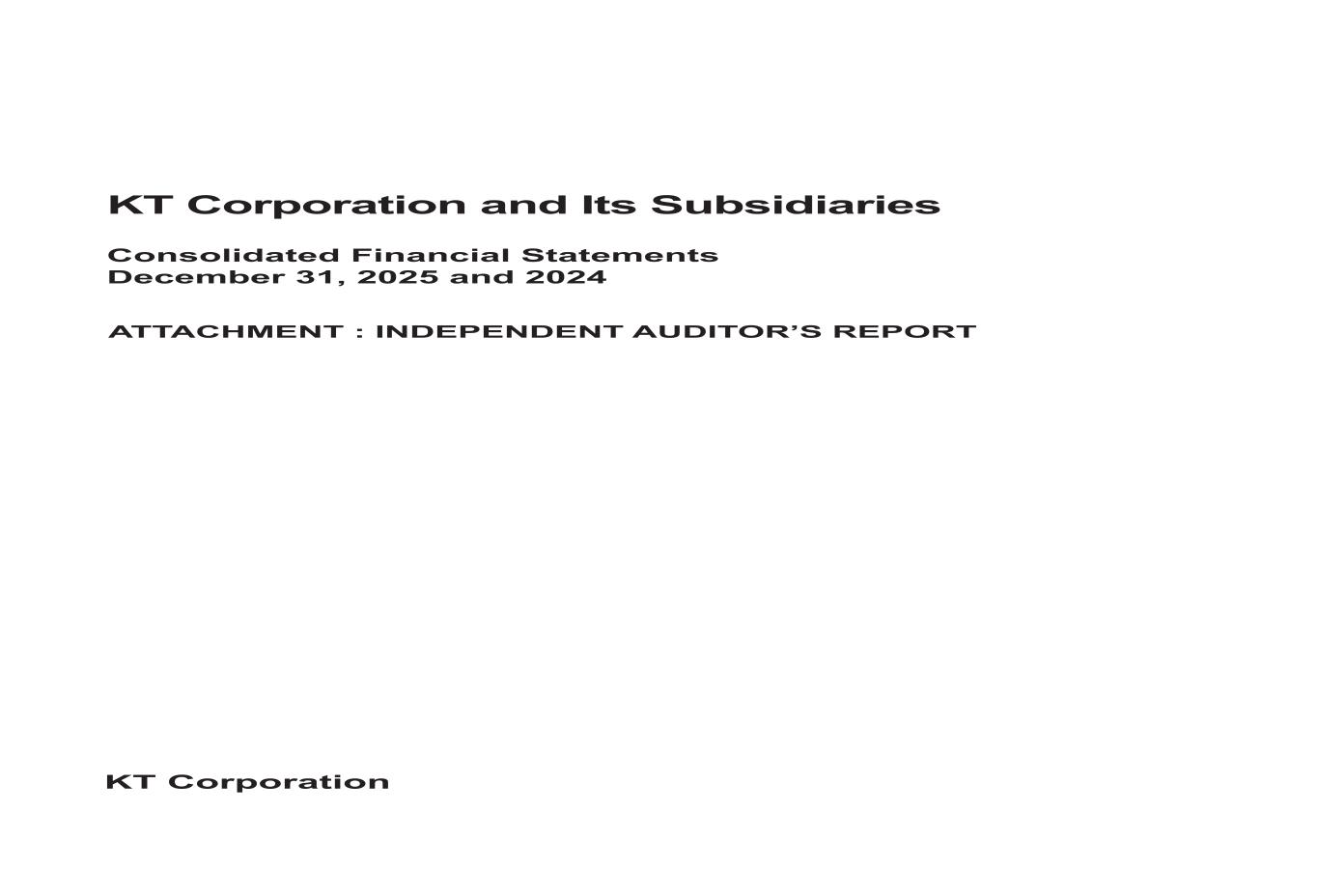 KT Corporation and Its Subsidiaries Consolidated Financial Statements December 31, 2025 and 2024 ATTACHMENT : INDEPENDENT AUDITOR’S REPORT KT Corporation