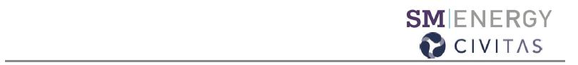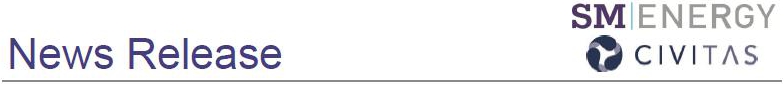 This press release contains “forward-looking statements” within the meaning of Section 27A of the Securities Act of 1933, as amended, and Section 21E of the Securities Exchange Act of 1934, as amended. All statements, other than statements of historical fact, included in this press release that address events or developments that SM Energy and Civitas expect, believe, or anticipate will or may occur in the future are forward-looking statements. The words “intend,” “expect,” “believe,” “will,” and similar expressions are intended to identify forward-looking statements. Forward-looking statements in this press release include, but are not limited to, statements regarding the proposed merger of SM Energy and Civitas Resources, Inc. (the “Transaction”), including the expected closing date of the Transaction, expectations for the combined company and its operations, scale, assets, value-creation opportunities, competitive position, synergies, financial prospects and anticipated future performance. There are a number of risks and uncertainties that could cause actual results to differ materially from the forward-looking statements included in this communication. These include the expected timing and likelihood of completion of the Transaction, the ability to successfully integrate the businesses, the occurrence of any event, change or other circumstances that could give rise to the termination of the merger agreement, the risk that the parties may not be able to satisfy the conditions to the Transaction in a timely manner or at all, risks related to disruption of management time from ongoing business operations, the risk that any announcements relating to the Transaction could have adverse effects on the market price of SM Energy’s common stock or Civitas common stock, the risk the pending Transaction could distract management of both entities and they will incur substantial costs, the risk that problems may arise in successfully integrating the businesses of the companies, which may result in the combined company not operating as effectively and efficiently as expected, the risk that the combined company may be unable to achieve synergies or it may take longer than expected to achieve those synergies and other important factors that could cause actual results to differ materially from those projected. All such factors are difficult to predict and are beyond SM Energy’s or Civitas’ control, including those detailed in SM Energy’s annual report on Form 10-K and subsequent quarterly reports on Form 10-Q and current reports on Form 8-K that are available on its website at www.sm-energy.com/investors and on the SEC’s website at www.sec.gov, and those detailed in Civitas’ annual report on Form 10-K and subsequent quarterly reports on Form 10-Q and current reports on Form 8-K that are available on Civitas’ website at ir.civitasresources.com/investor-relations and on the SEC’s website at www.sec.gov. All forward-looking statements are based on assumptions that SM Energy or Civitas believe to be reasonable but that may not prove to be accurate. Such forward-looking statements are based on assumptions and analyses made by SM Energy and Civitas in light of their perceptions of current conditions, expected future developments, and other factors that SM Energy and Civitas believe are appropriate under the circumstances. These statements are subject to a number of known and unknown risks and uncertainties. Forward-looking statements are not guarantees of future performance and actual events may be materially different from those expressed or implied in the forward-looking statements. The forward-looking statements in this press release speak as of the date of this press release.