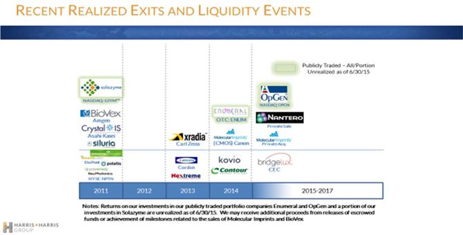 Harris & Harris Group, Inc.® (the "Company," "us," "our" and "we"), is an internally managed, non-diversified management investment company that has elected to operate as a business development company ("BDC") under the Investment Company Act of 1940 (the "1940 Act"). Certain information and disclosures normally included in the consolidated financial statements in accordance with accounting principles generally accepted in the United States of America ("GAAP") have been condensed or omitted as permitted by Regulation S-X and Regulation S-K. Accordingly, they do not include all information and disclosures necessary for a fair presentation of our financial position, results of operations and cash flows in conformity with GAAP. The results of operations for any interim period are not necessarily indicative of the results for the full year. The accompanying consolidated financial statements should be read in conjunction with the audited consolidated financial statements and notes thereto contained in our Annual Report on Form 10-K for the year ended December 31, 2014.