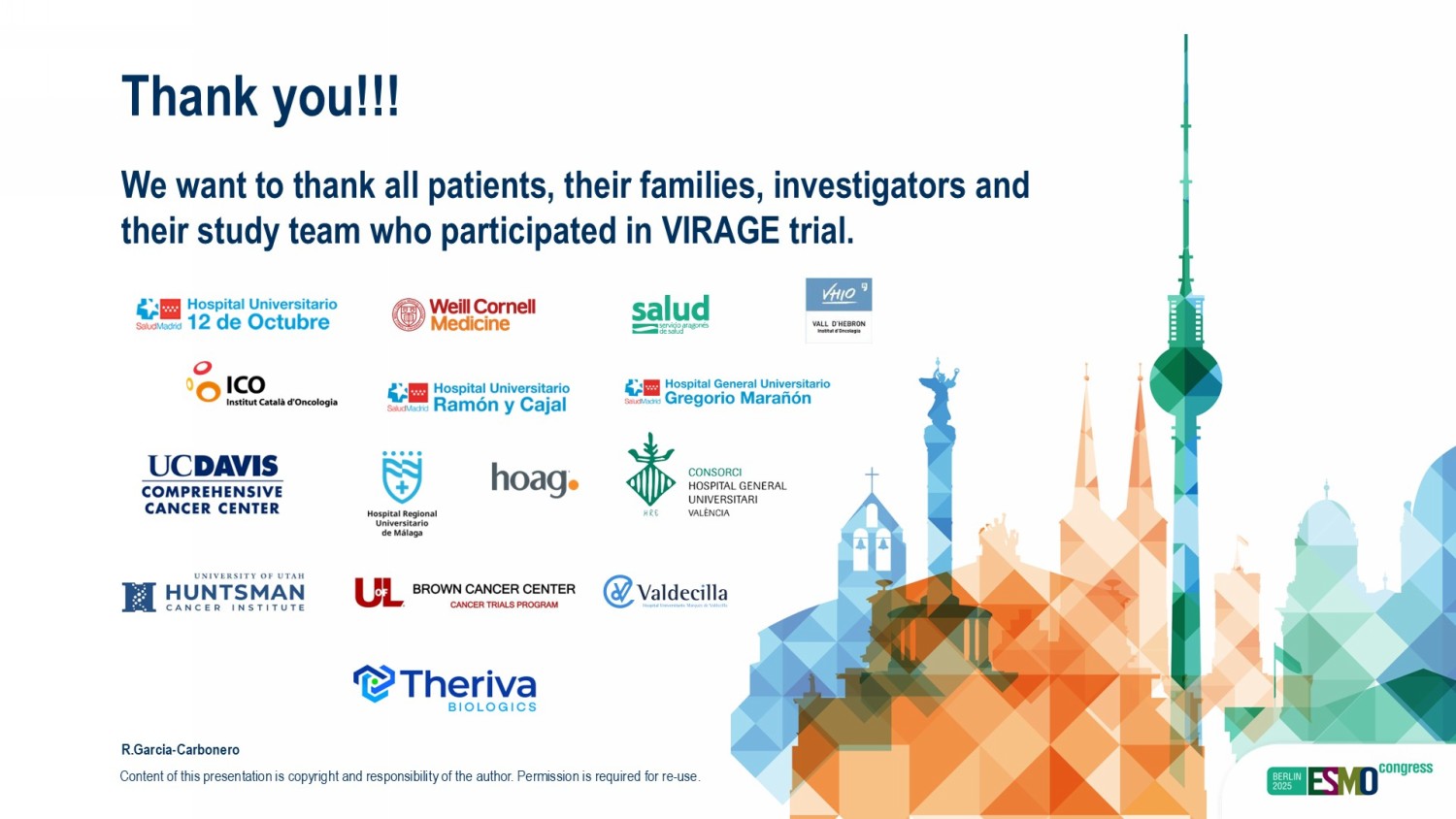 Content of this presentation is copyright and responsibility of the author. Permission is required for re - use. Thank you!!! We want to thank all patients, their families, investigators and their study team who participated in VIRAGE trial. R.Garcia - Carbonero