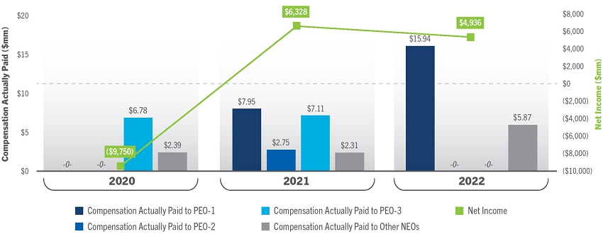 As required by Section 953(a) of the Dodd-Frank Act and Item 402(v) of Regulation S-K, we are providing disclosure regarding the relationship between executive Compensation Actually Paid, or CAP, and the financial performance of our Company. For each year, compensation actually paid is the total compensation as reported in the Summary Compensation Table, modified to adjust for changes in pension benefits and equity awards. Due to our executive compensation program being heavily weighted towards equity awards, compensation actually paid to our executives is primarily determined by share price movement. Additionally, this disclosure does not necessarily reflect the value actually realized by our executives or how the Compensation Committee makes compensation decisions for our executive team. Please refer to our Compensation Committee Philosophy beginning on page 34 for more information regarding how the Compensation Committee determines executive compensation. We calculated compensation actually paid for our Principal Executive Officers, or PEOs, and Other NEOs for each of the fiscal years ended December 31, 2020, December 31, 2021 and December 31, 2022.