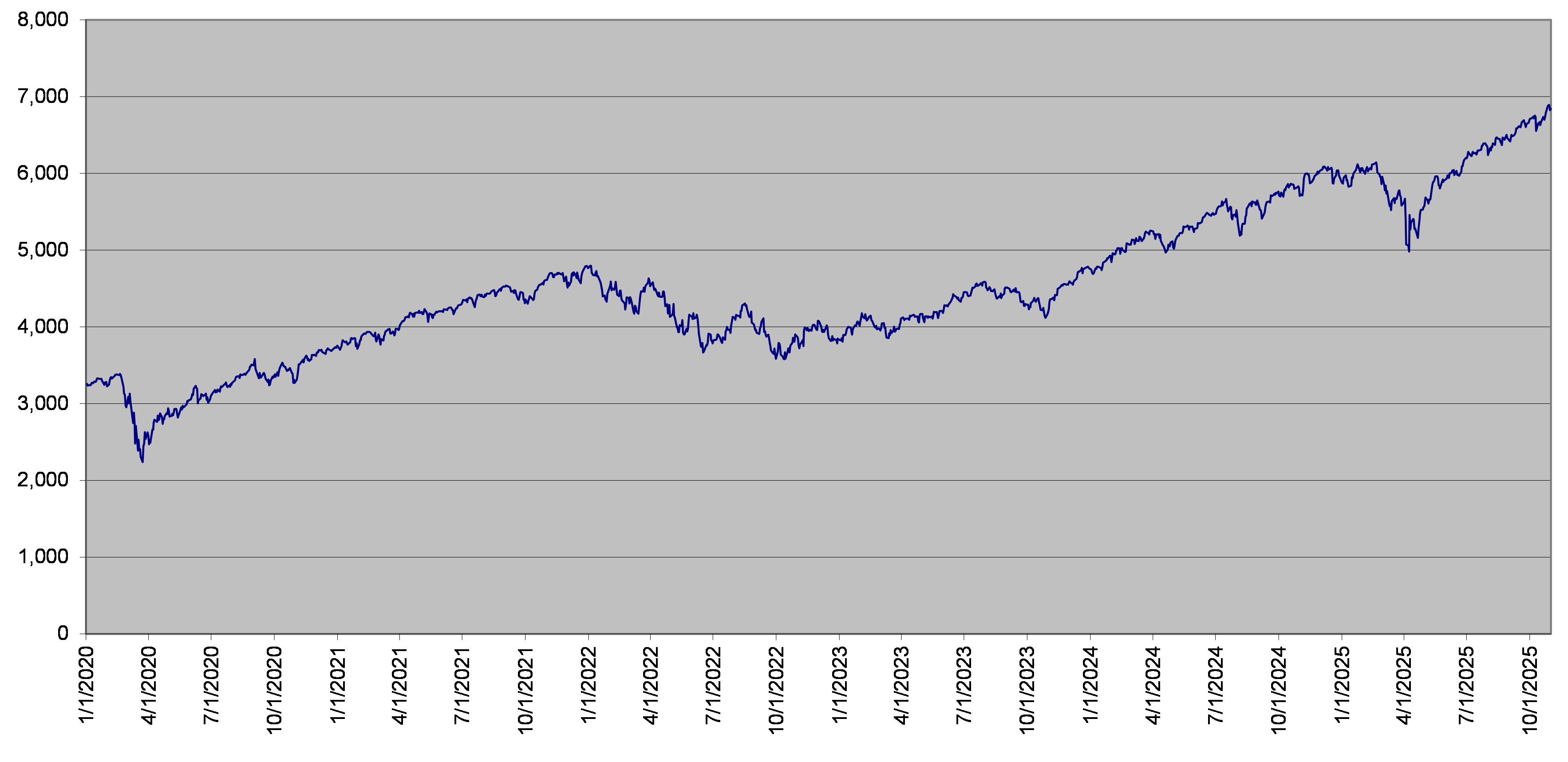 SPX Index Daily Closing Levels January 1, 2020 to October 31, 2025 |