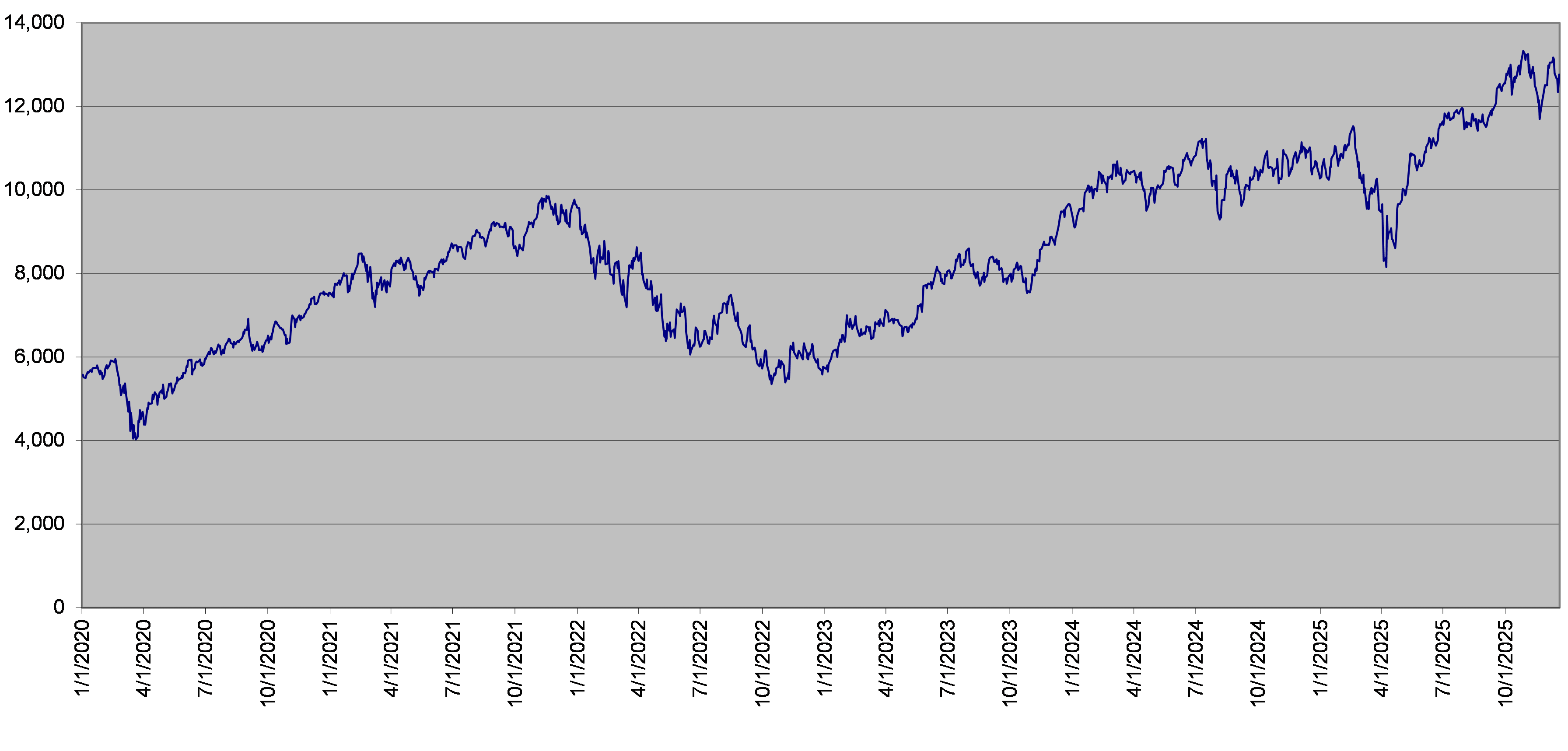 NDXT Index Daily Closing Levels January 1, 2020 to December 19, 2025 |
