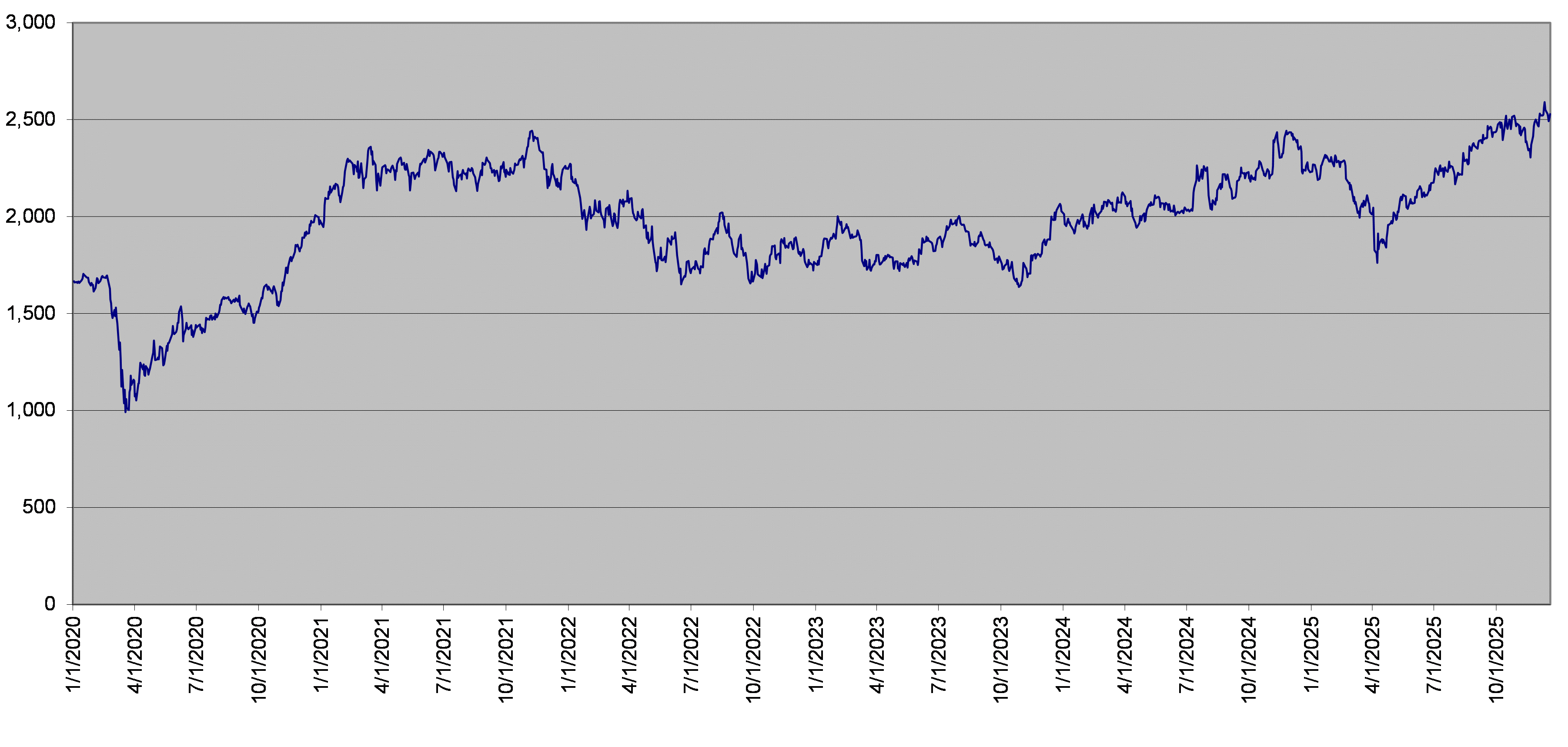RTY Index Daily Closing Levels January 1, 2020 to December 19, 2025 |