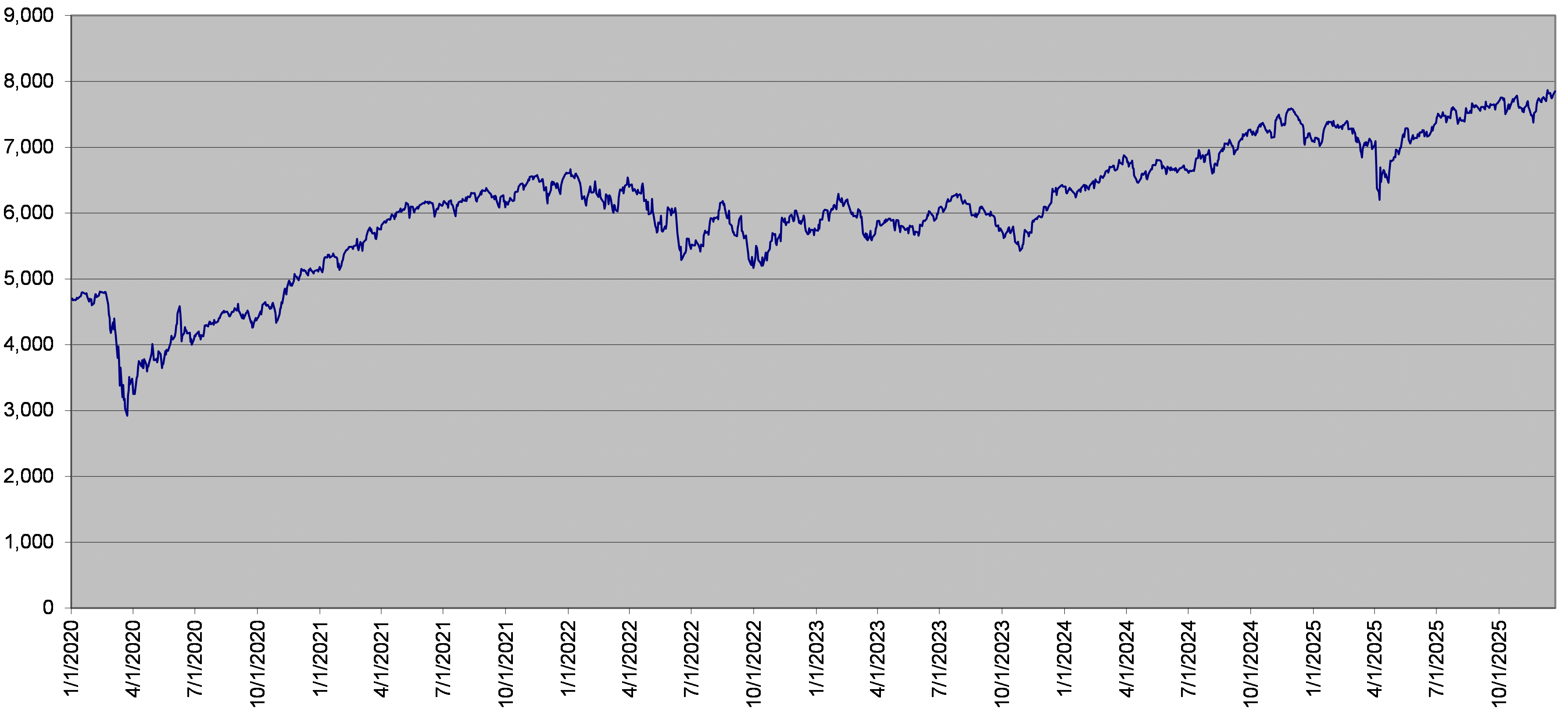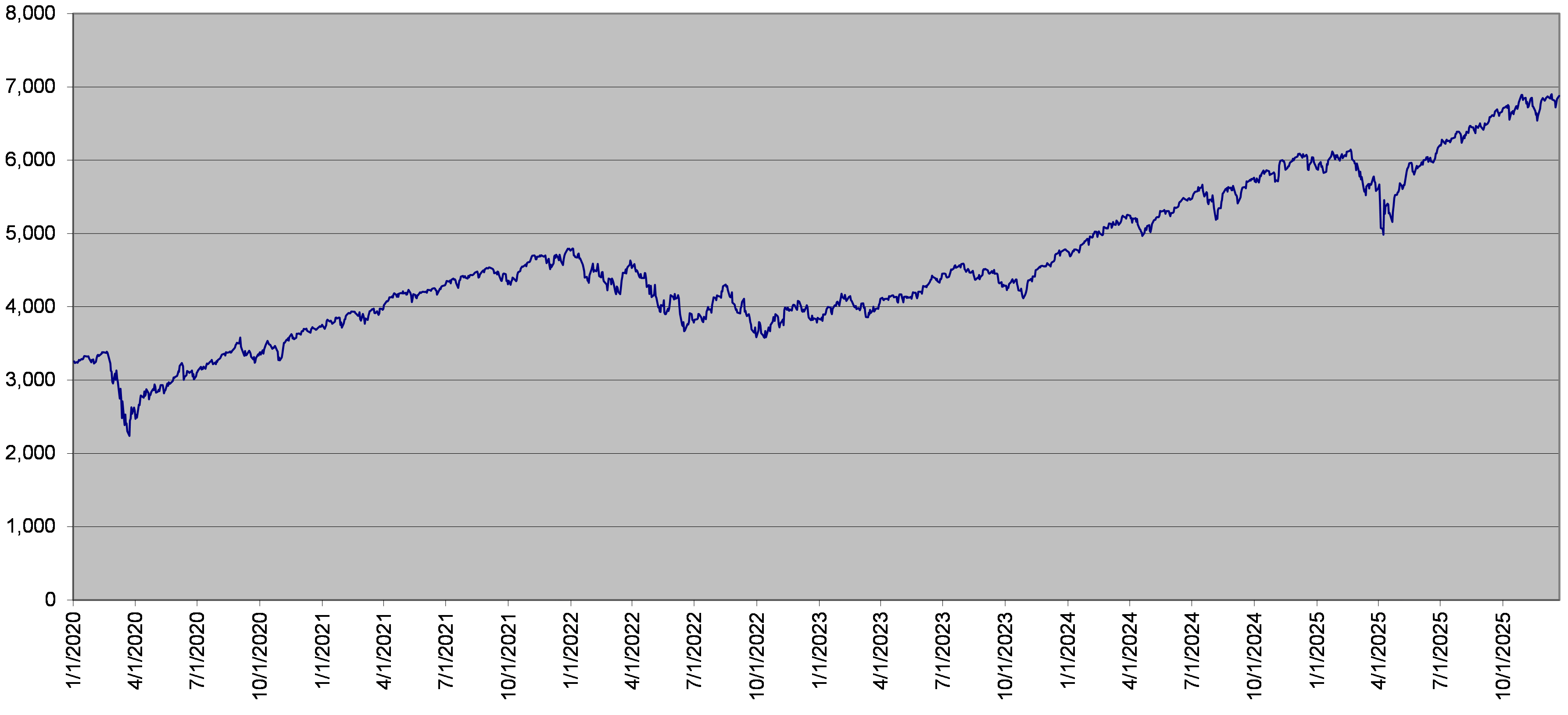 SPX Index Daily Closing Levels January 1, 2020 to December 22, 2025 |