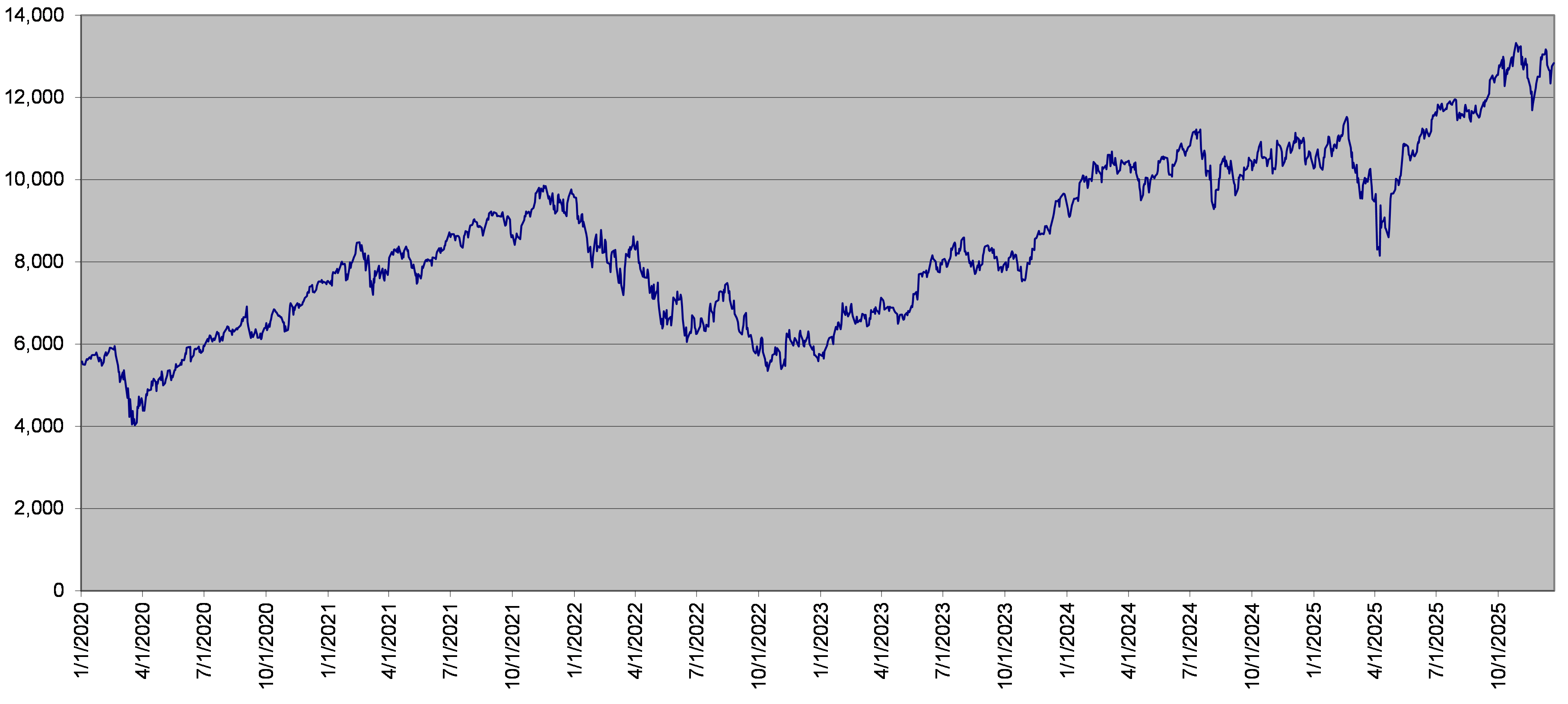 NDXT Index Daily Closing Levels January 1, 2020 to December 22, 2025 |