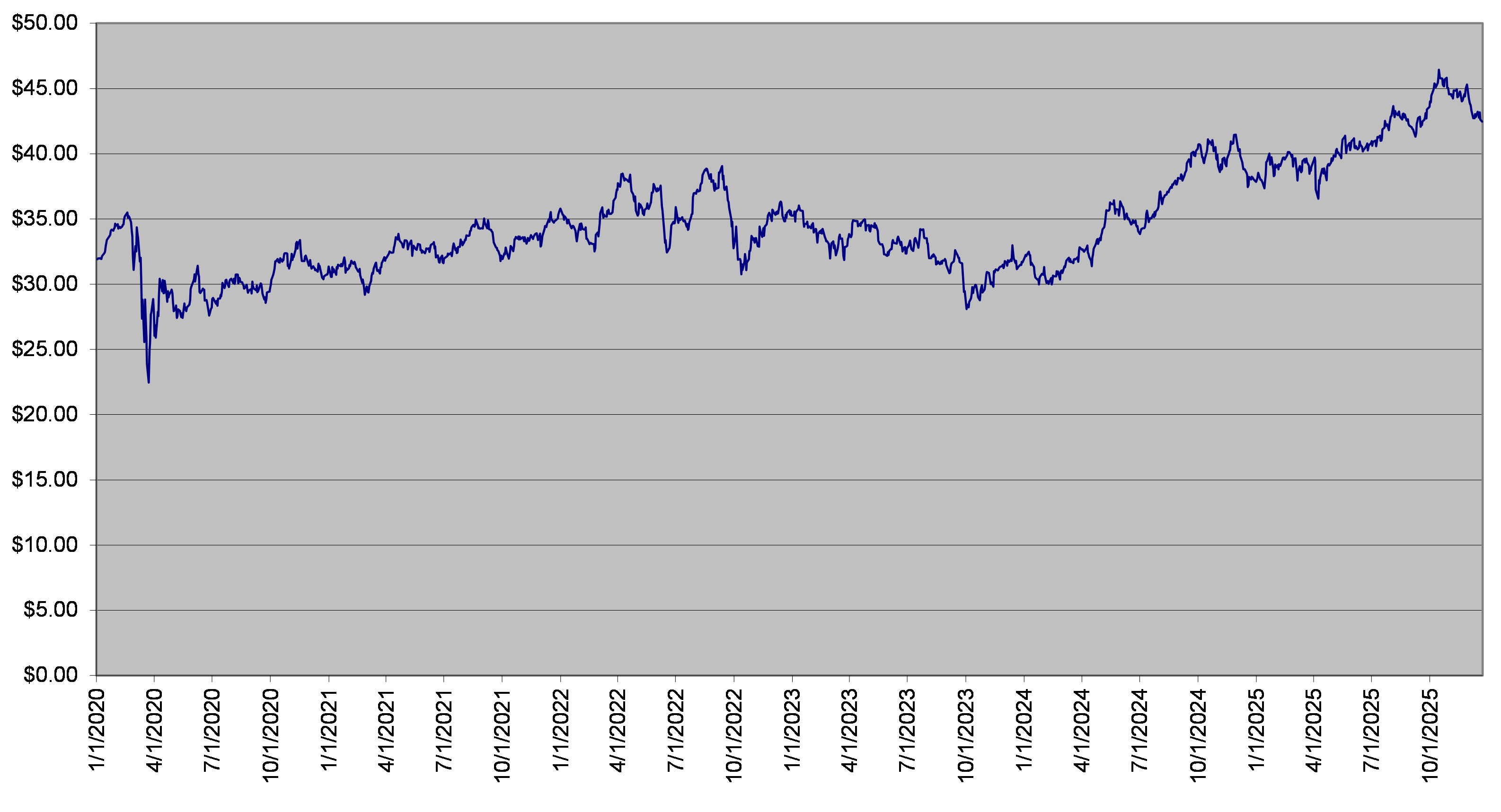 The closing level of the XLU Fund on December 22, 2025 was $42.47. The following graph sets forth the daily closing levels of the underlier for the period noted below. We obtained the historical information presented in this document from Bloomberg Financial Markets, without independent verification. The underlier has at times experienced periods of high volatility. You should not take the historical closing levels of the underlier as an indication of its future performance, and no assurance can be given as to the closing level of the underlier at any time.