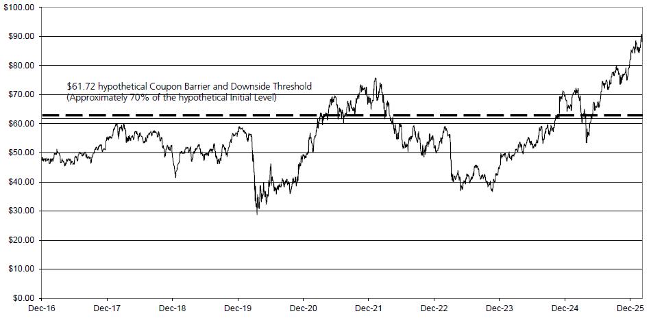 * The dashed line indicates the Coupon Barrier and Downside Threshold of $61.72, which is approximately 70% of the Initial Underlying Price.