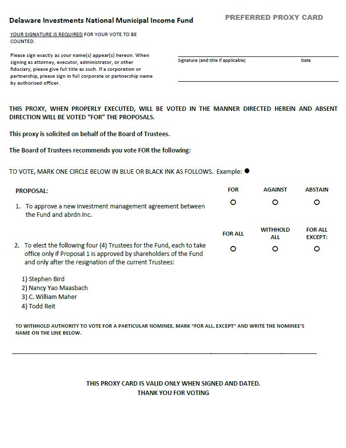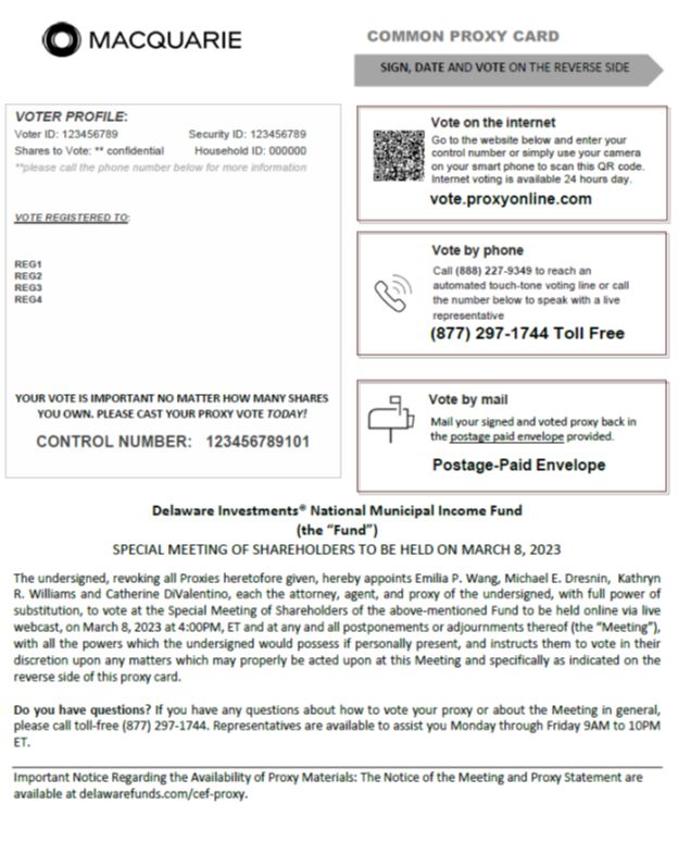 Meeting of Shareholders (with any adjournments or postponements thereof, the “Special Meeting”) of the Delaware Investments National Municipal Income Fund, a Massachusetts business trust (the “Fund”). Your vote is important.
