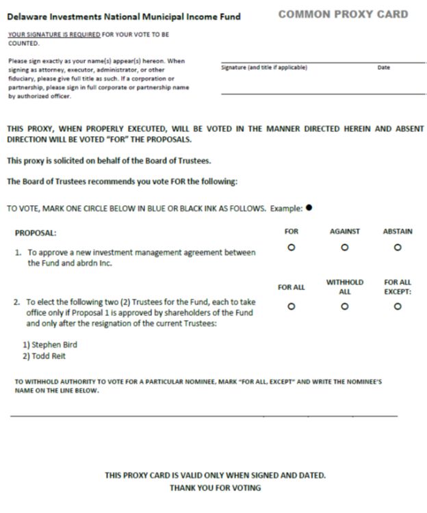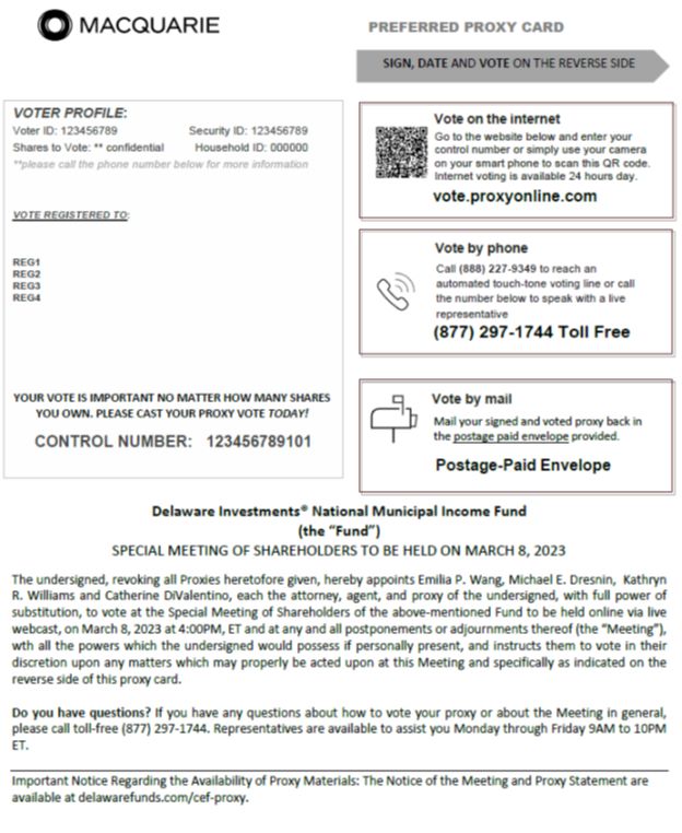 Meeting of Shareholders (with any adjournments or postponements thereof, the “Special Meeting”) of the Delaware Investments National Municipal Income Fund, a Massachusetts business trust (the “Fund”). Your vote is important.